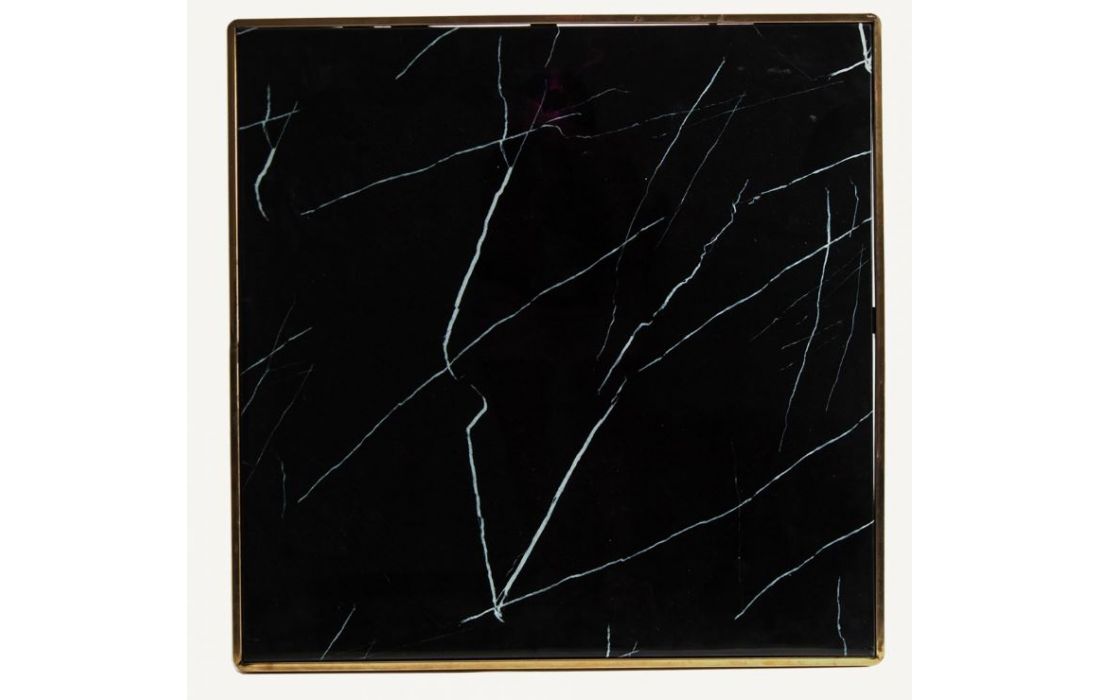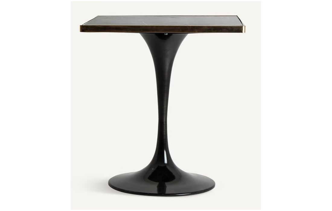 Mesa de bar em ferro com a suprefíce em mármore envolvida de açoDimensões em cm