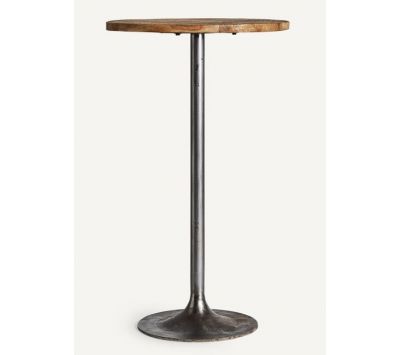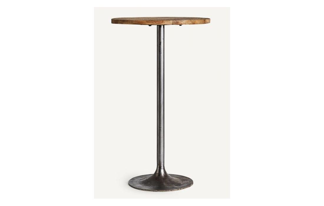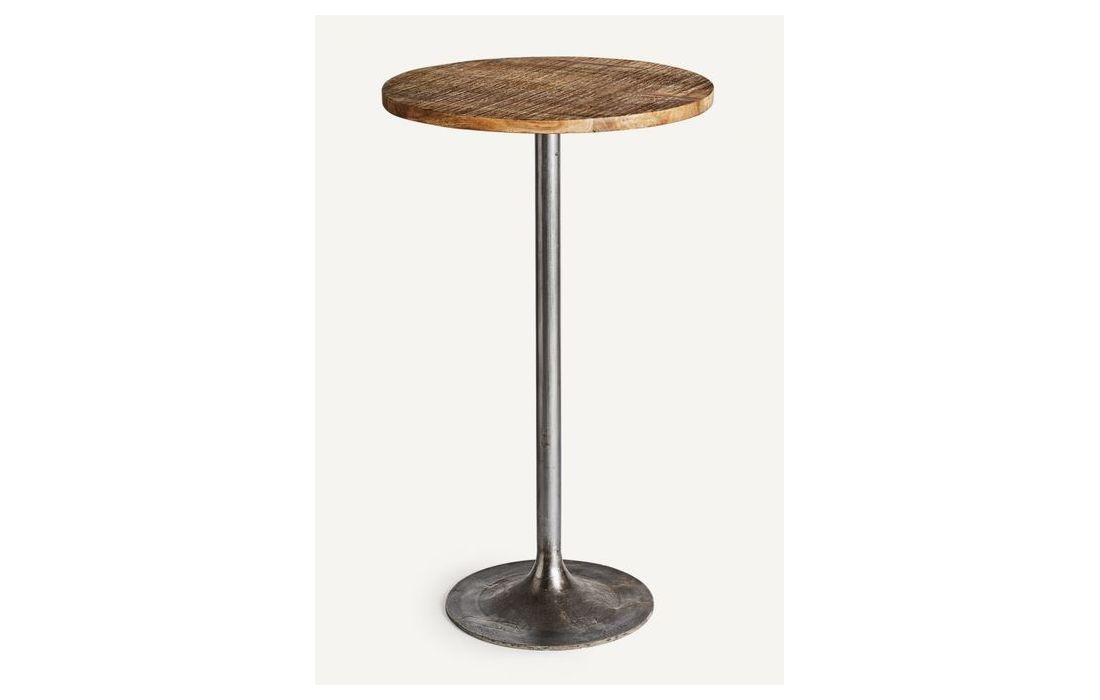 Mesa de bar com base em ferro e superfíce de madeira mangoDimensões em cm