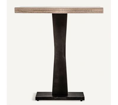 Mesa de bar com base em ferro e superfíce de madeira de mangoDimensões em cm