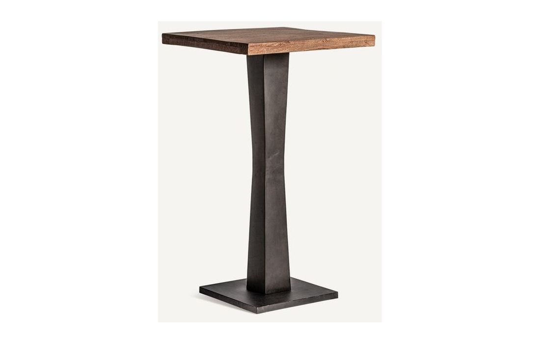 Mesa de bar com base em ferro e superfíce de madeira de mangoDimensões em cm