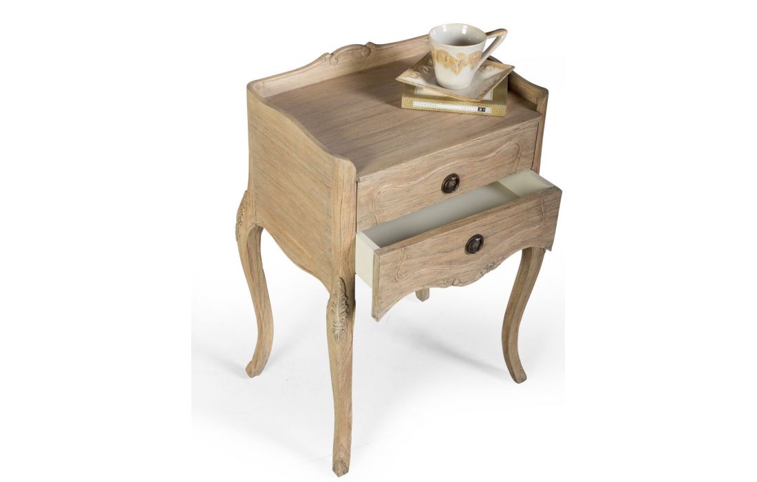 Mesa de cabeceira clássica com 2 gavetas, estrutura em madeira.