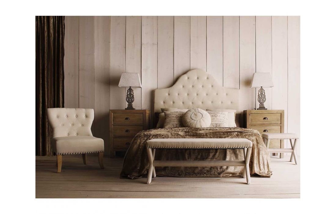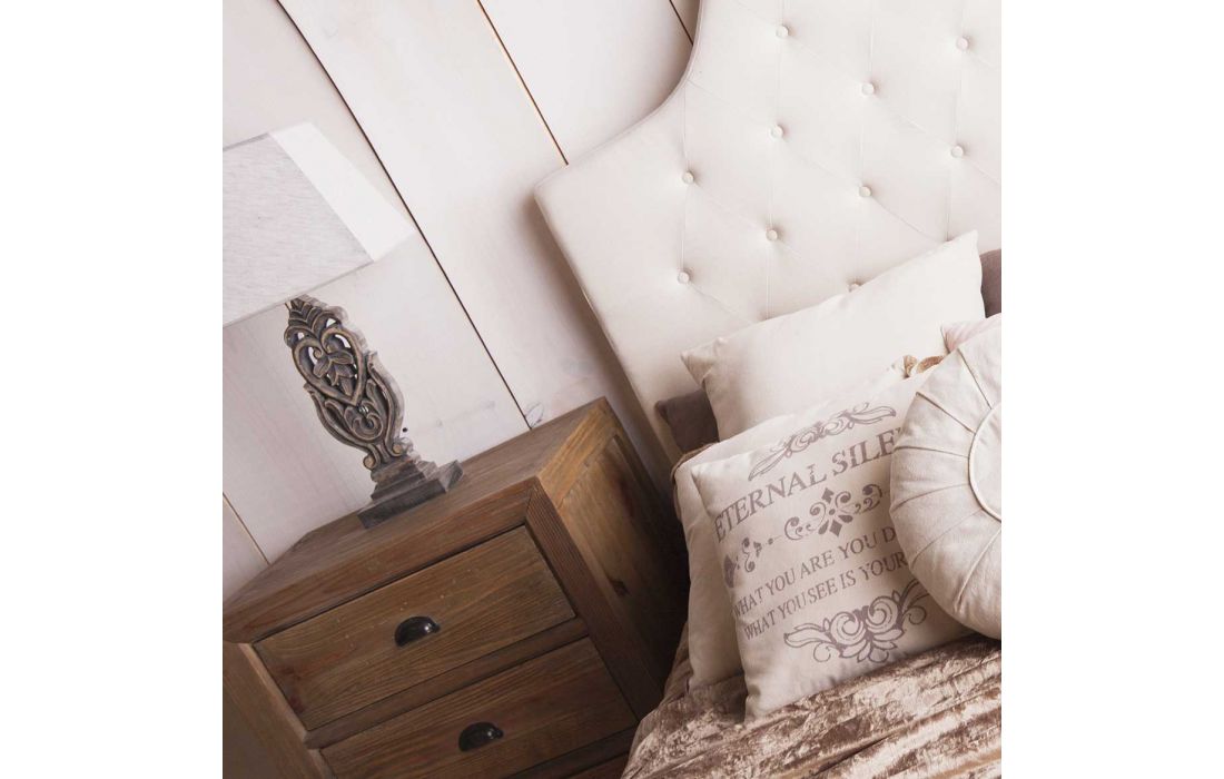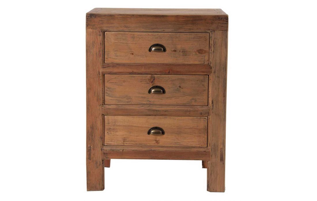 Mesa de cabeceira de cor natural envelhecida estilo vintage, feita em madeira olmo.