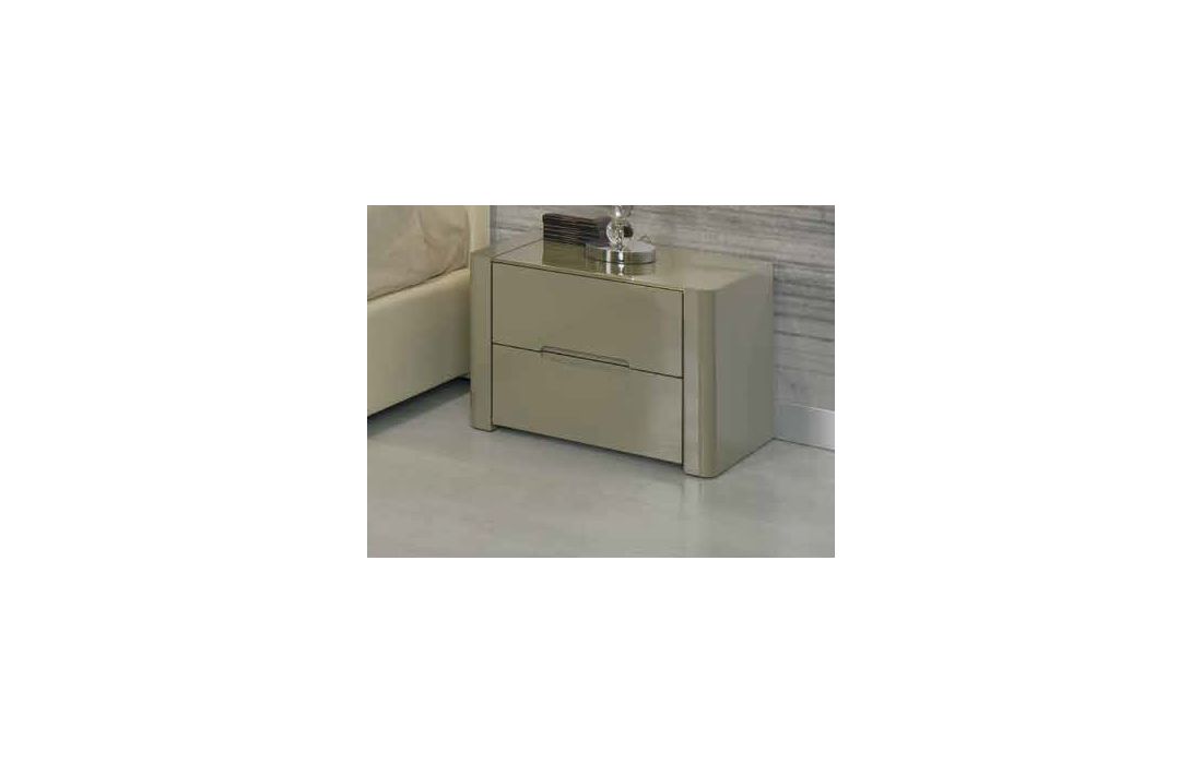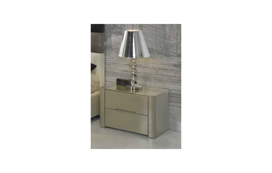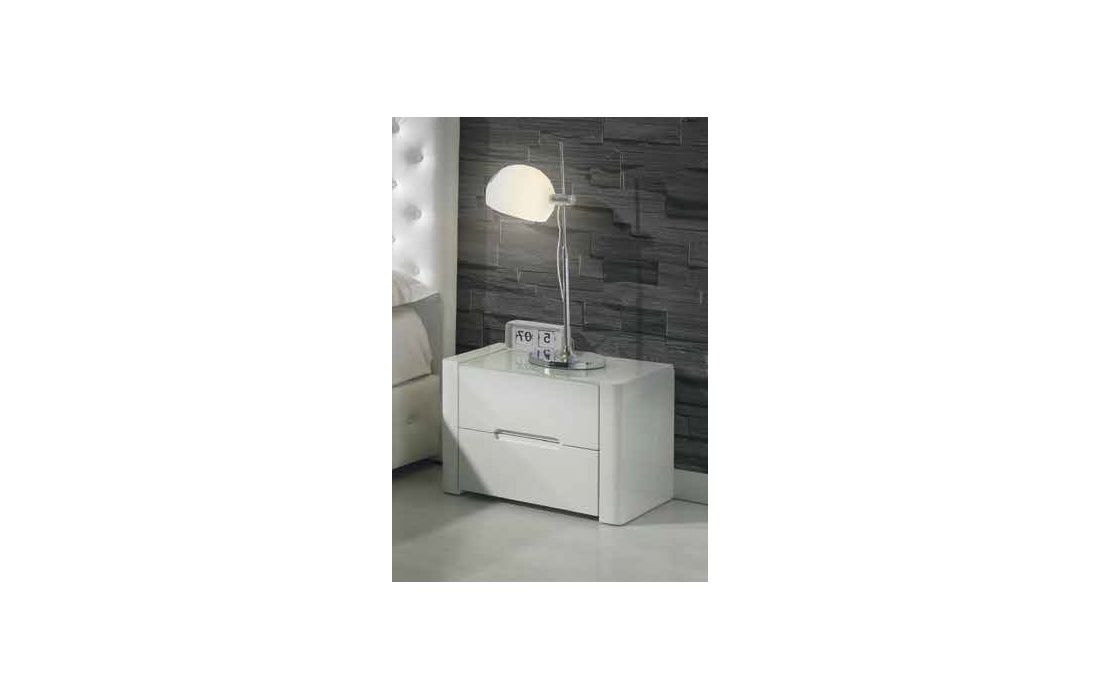 Mesa de cabeceira com 2 gavetas, em alto brilho branco, moca ou prateado.