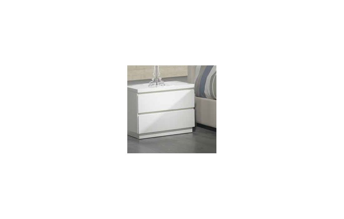Mesa de cabeceira com 2 gavetas nos vários acabamentos possíveis.