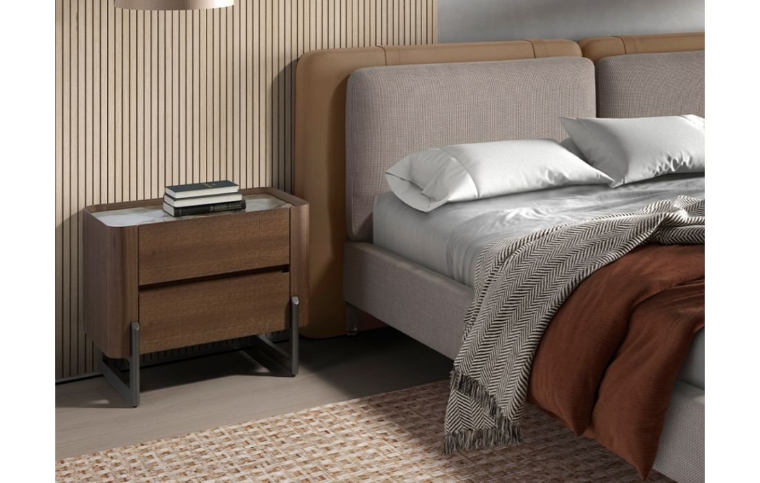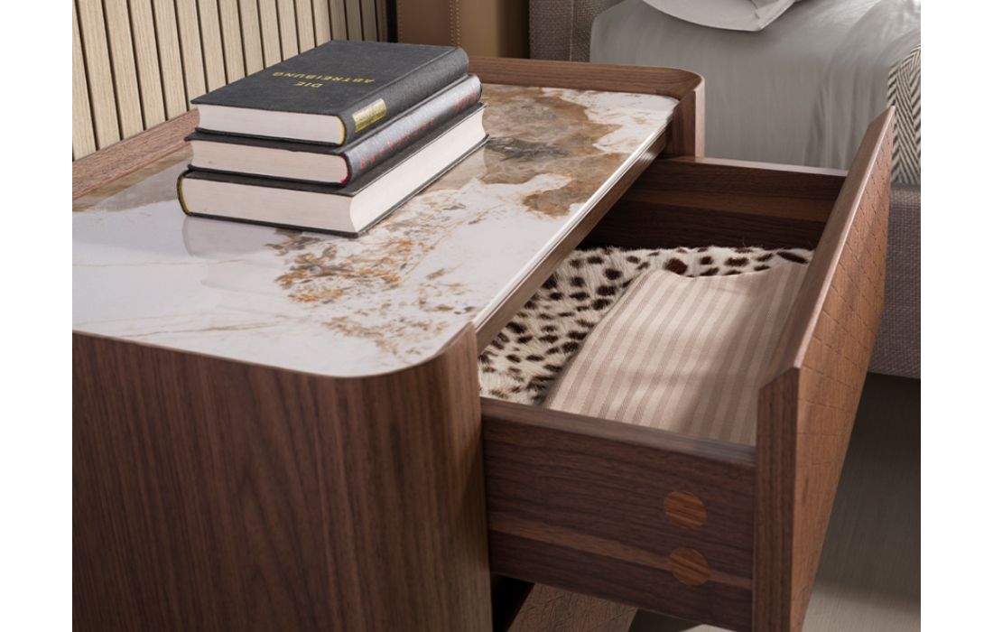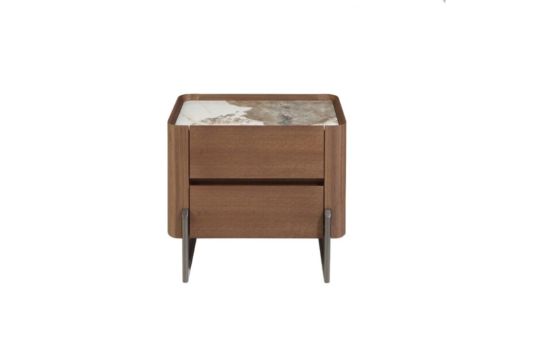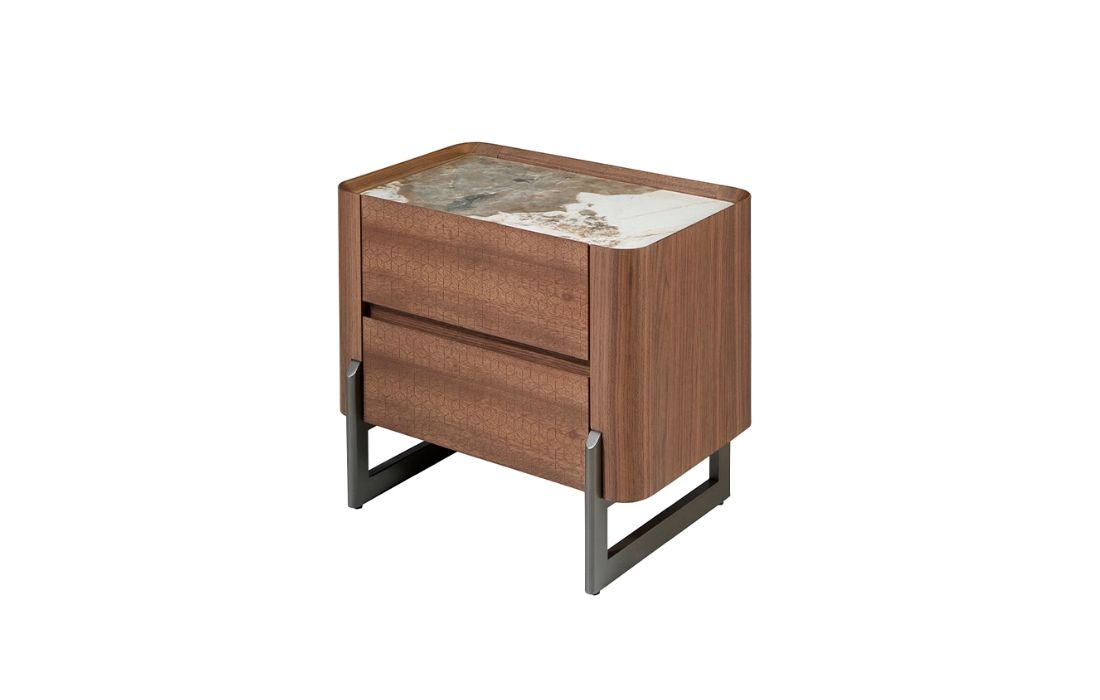 Madeira folheada / Aço inoxidavél / Mármore