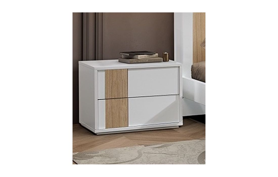 Acabamento igual à imagem: Lacado branco mate com pormenores em carvalho