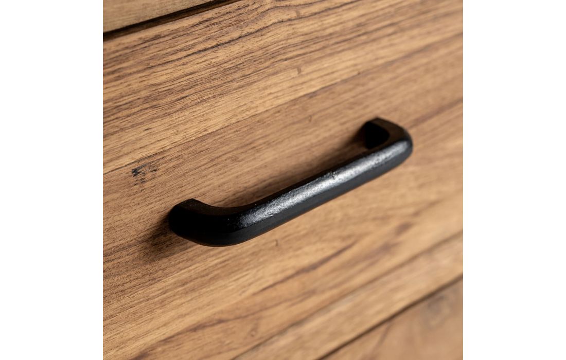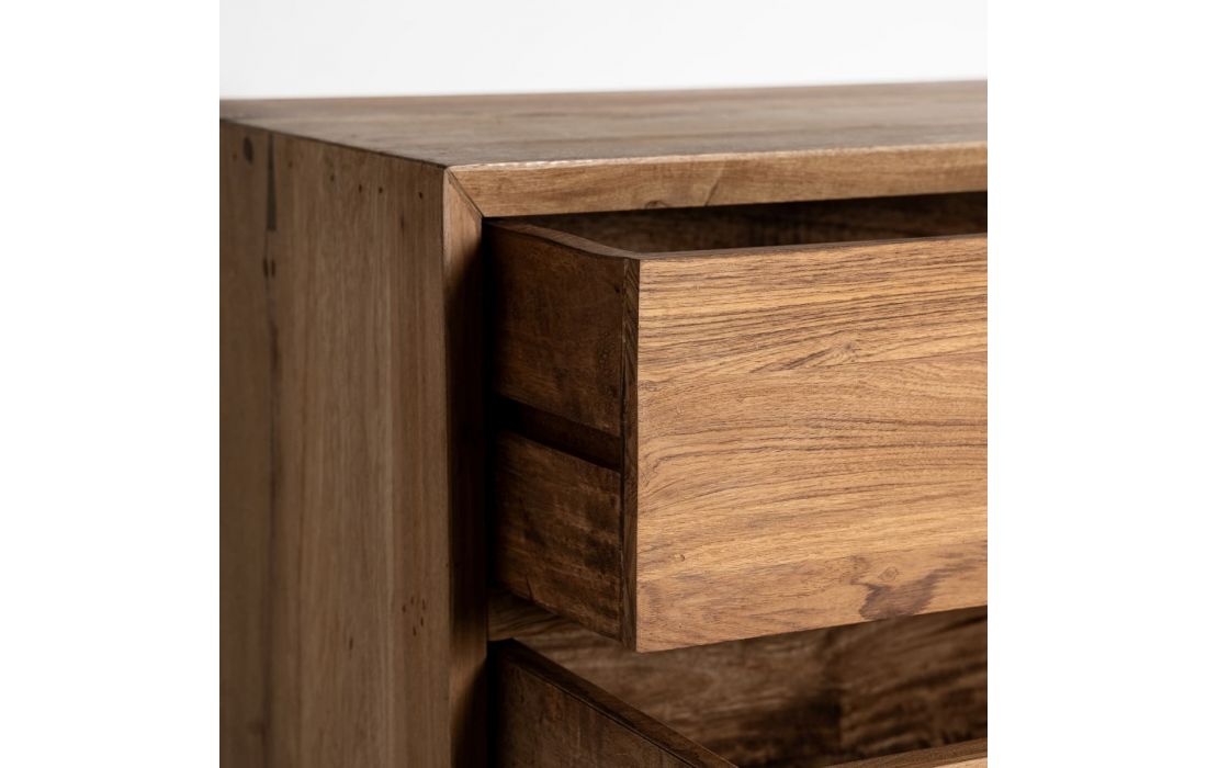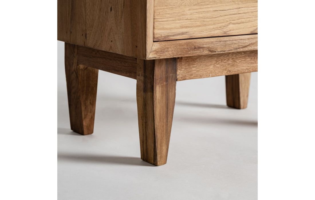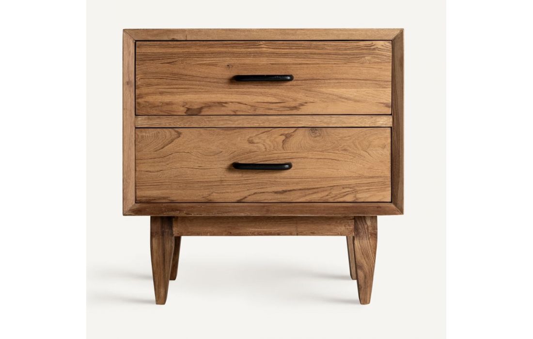 Mesa de cabeceira estilo nórdico feita em madeira recuperada na cor castanha