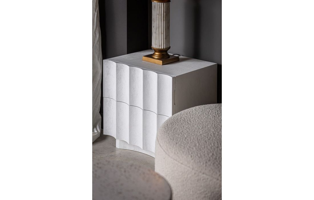 Mesa de cabeceira estilo contemporâneo feita em resina, cascalho e MDF na cor brancaDestinatário :
