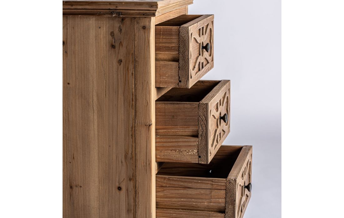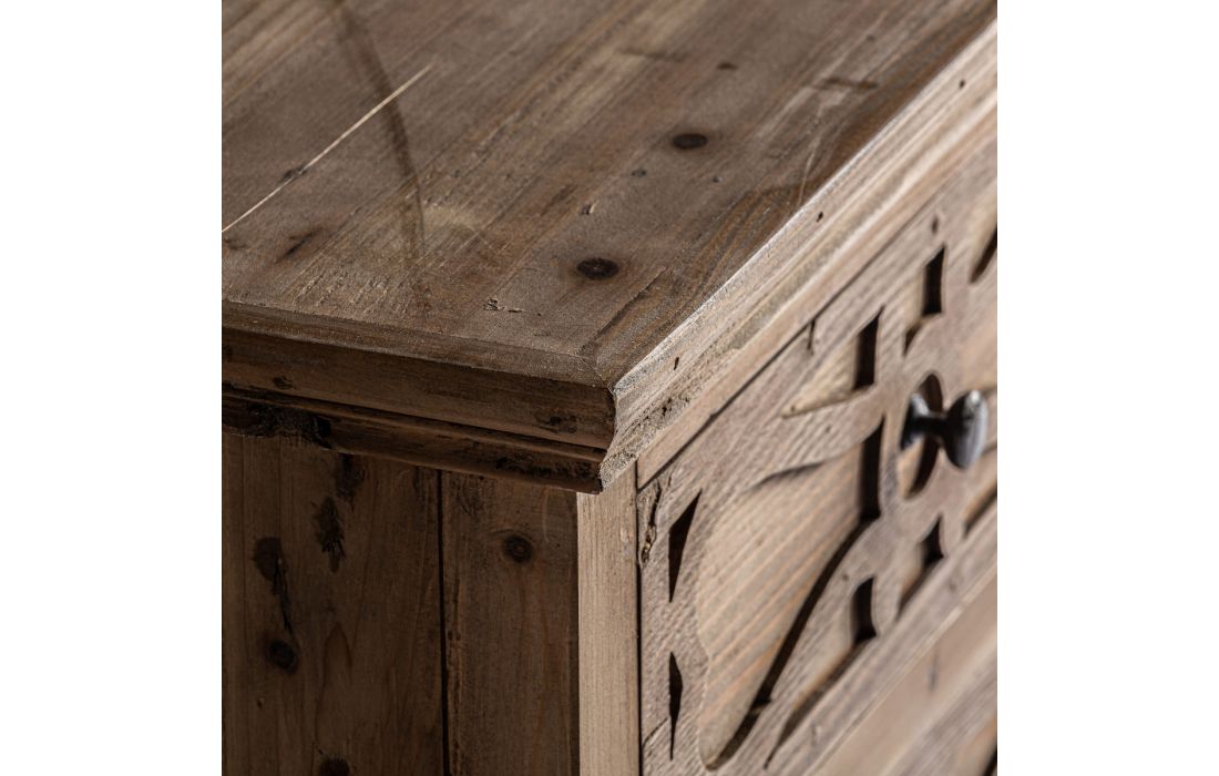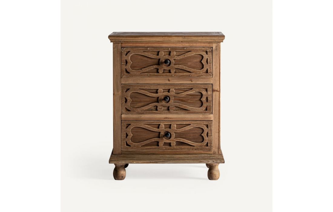 Mesa de cabeceira estilo colonial feita em madeira de olmo na cor castanhaDestinatário :
