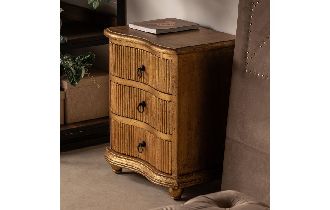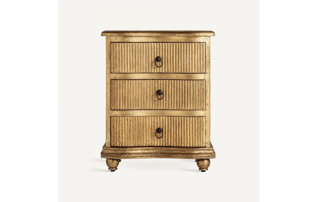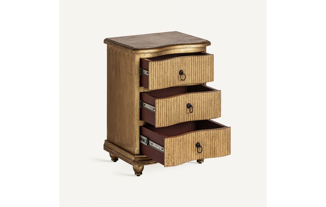 Mesa de cabeceira estilo clássico feita em madeira de mango e ferro na cor dourada