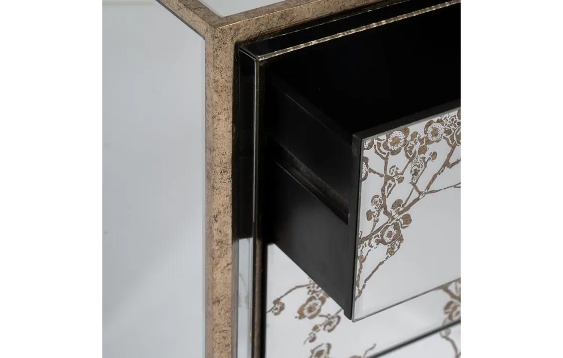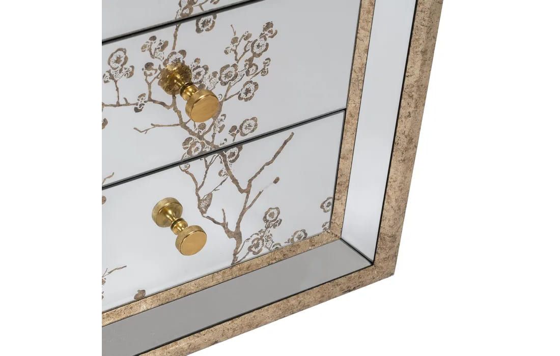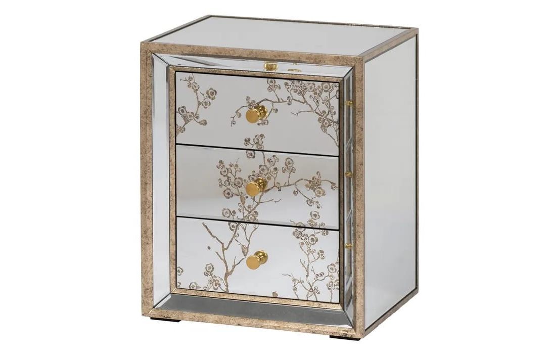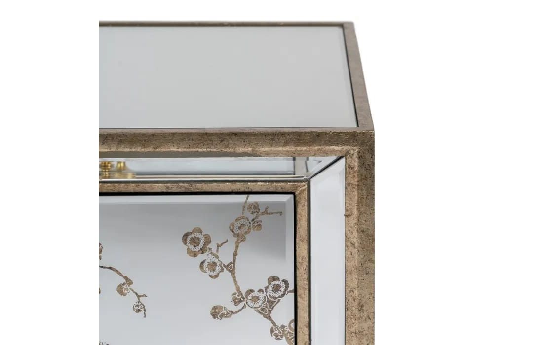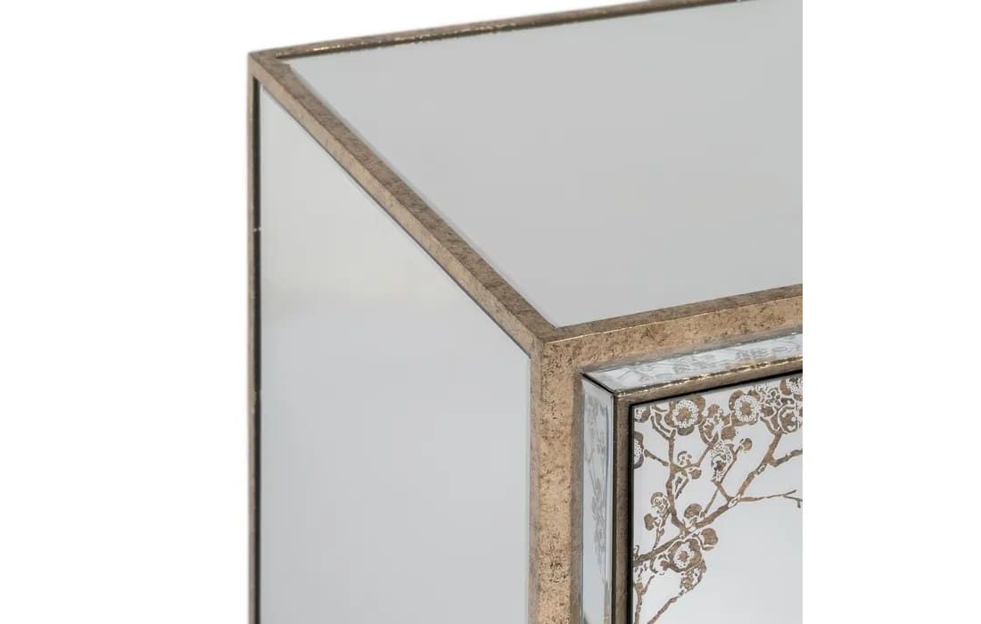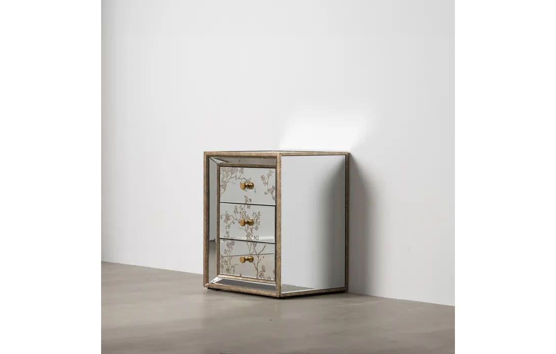 Mesa de cabeceira com estrutura em MDF e espelho.