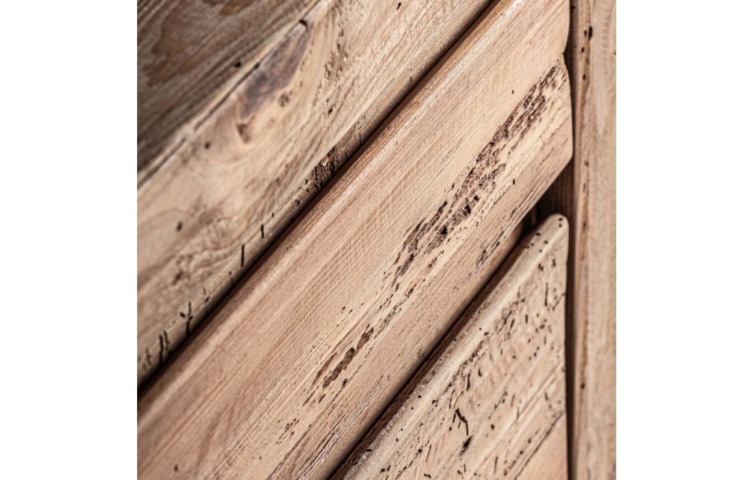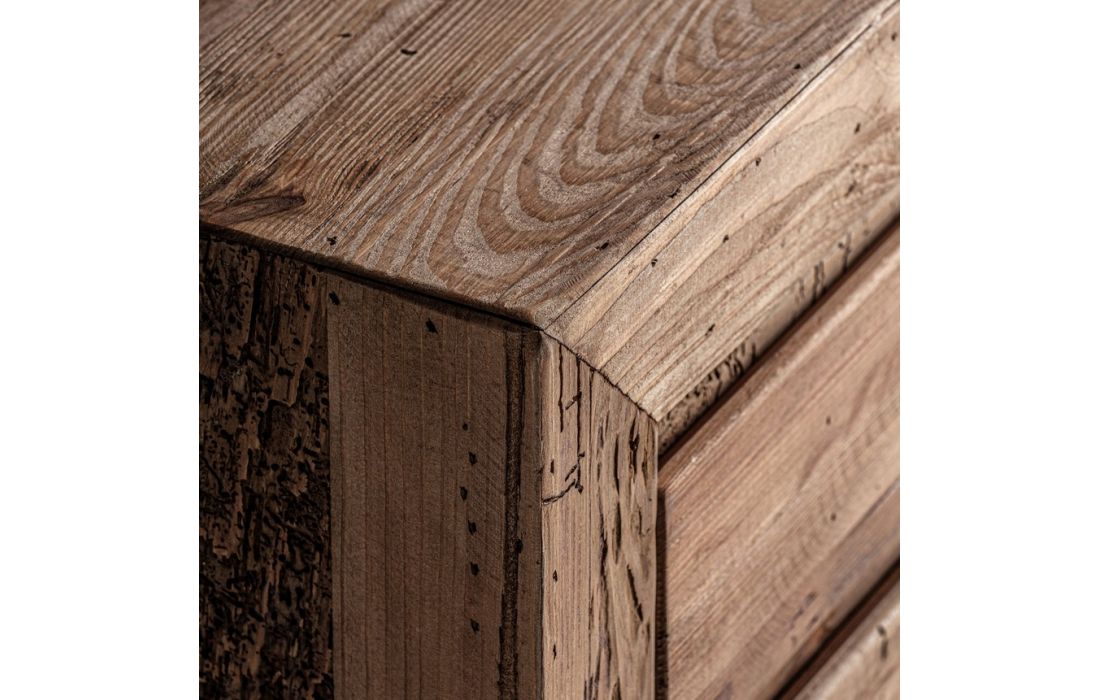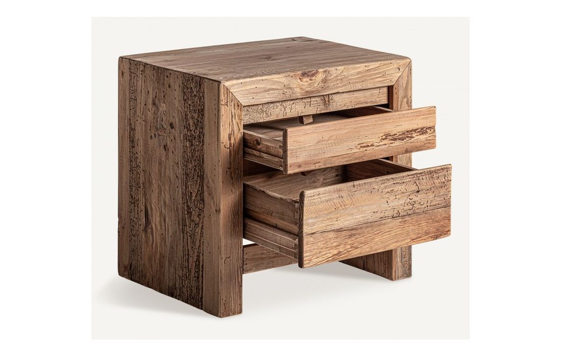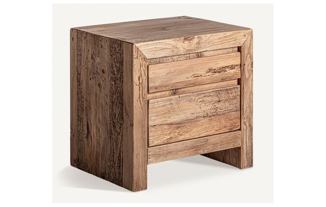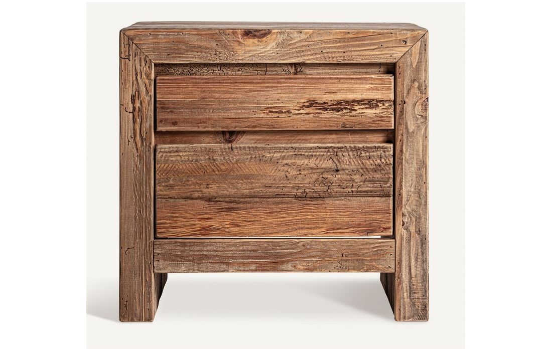 Mesinha de cabeceira em madeira de pinho reciclada na cor castanha com acabamento envelhecidoDestinatário :