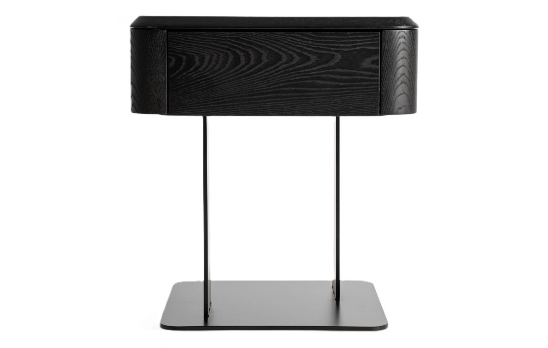 Mesa de cabeceira de estilo contemporâneo, fabricada em MDF preto, combinada com folheado de olmo preto e ferro pretoDestinatário :