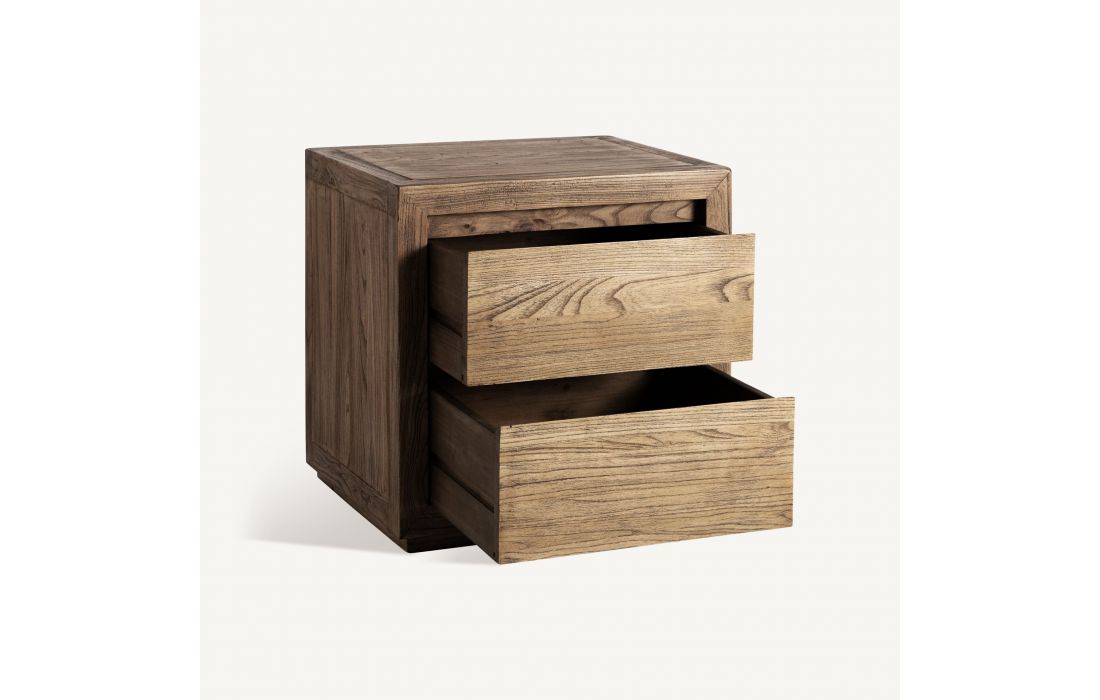 Esta mesa de cabecira, trabalhada a partir de madeira de olmo, reflete um estilo contemporâneo que se integra facilmente em quartos modernos. Seu design compacto e funcional é ideal para projetos de de casa e hospitalidade.Destinatário :