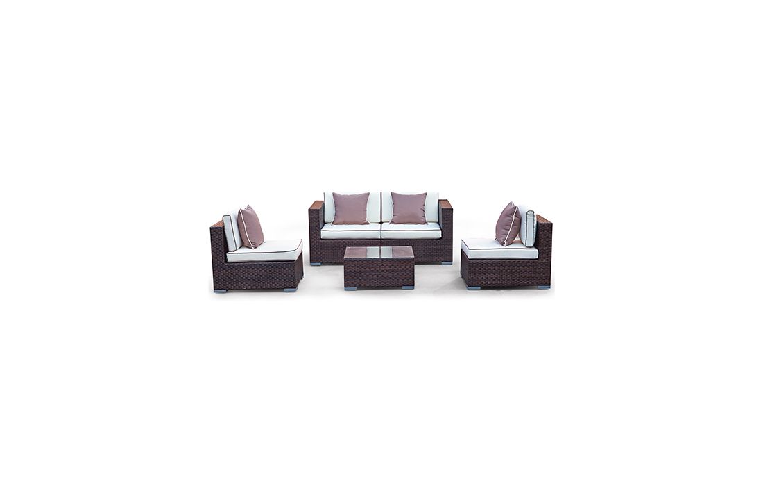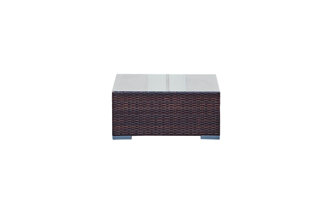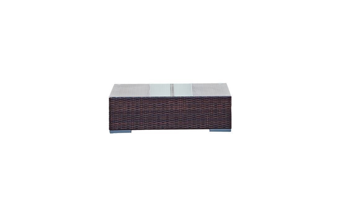 Mesa de centro em vime sintético castanho escuro e tampo de vidro transparente, retangular ou quadrada.Destinatário :