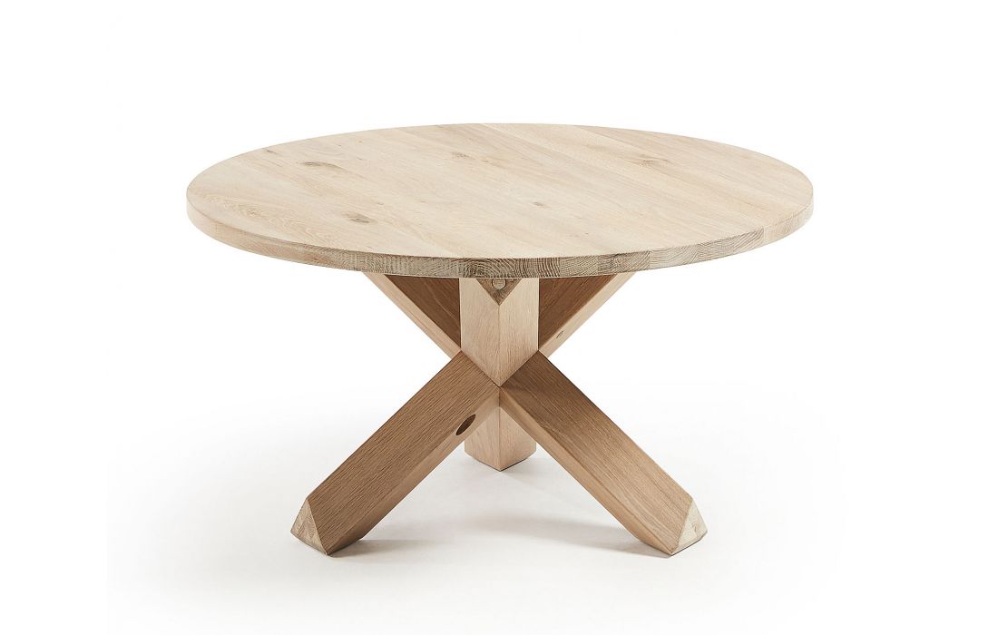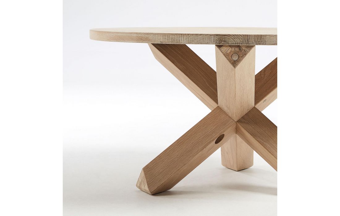 Mesa de centro redonda com tampo em madeira teca envelhecida branqueada e pé em alumínio cinza claro. Dimensões em cmL 100 P 100 A 38Prazo de Entrega15 a 20 dias