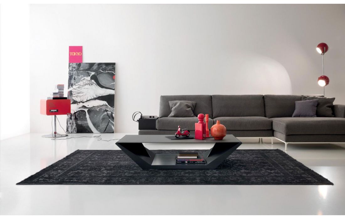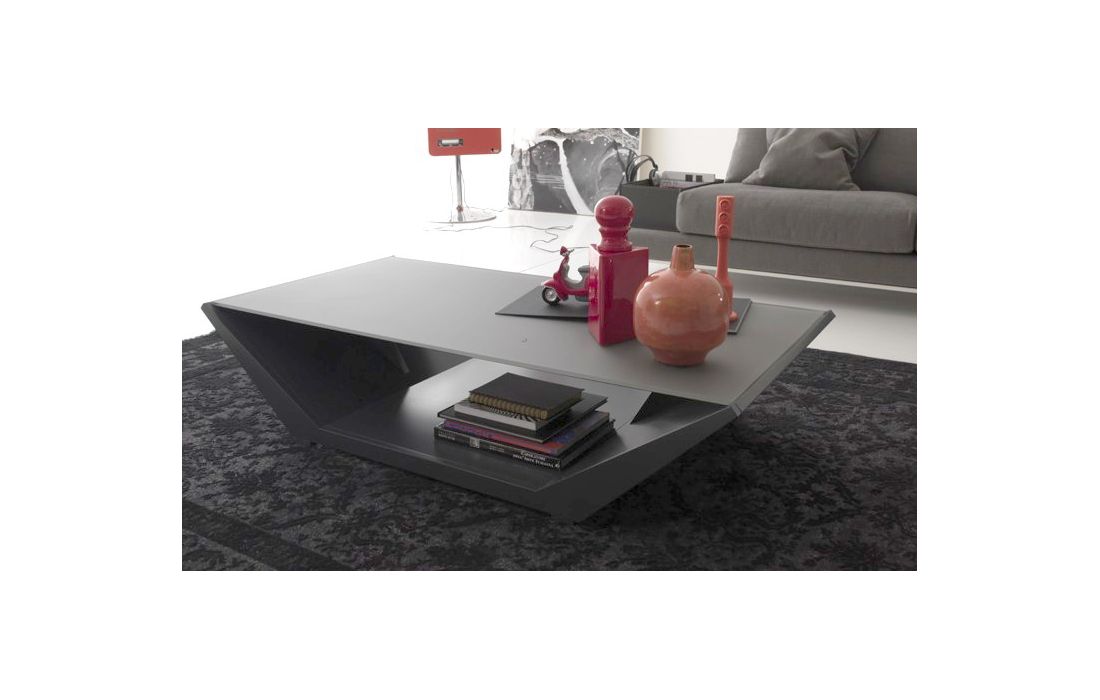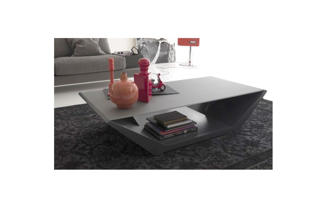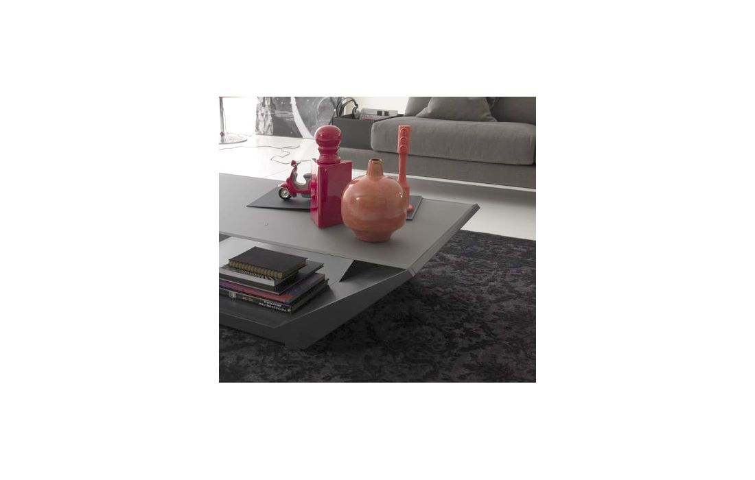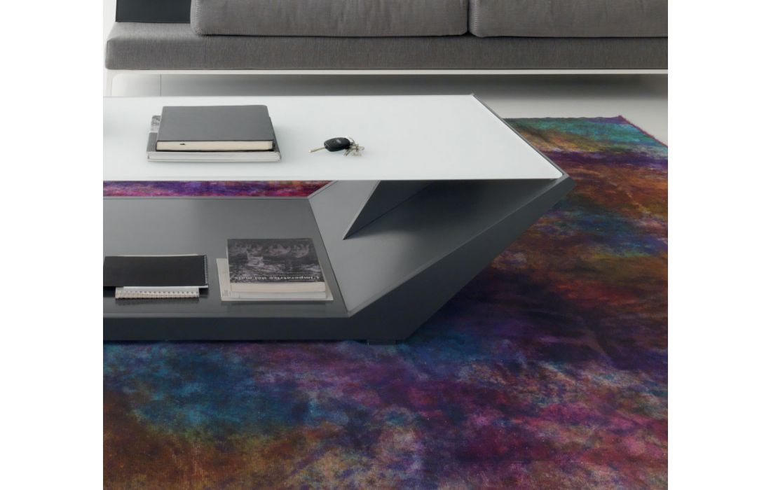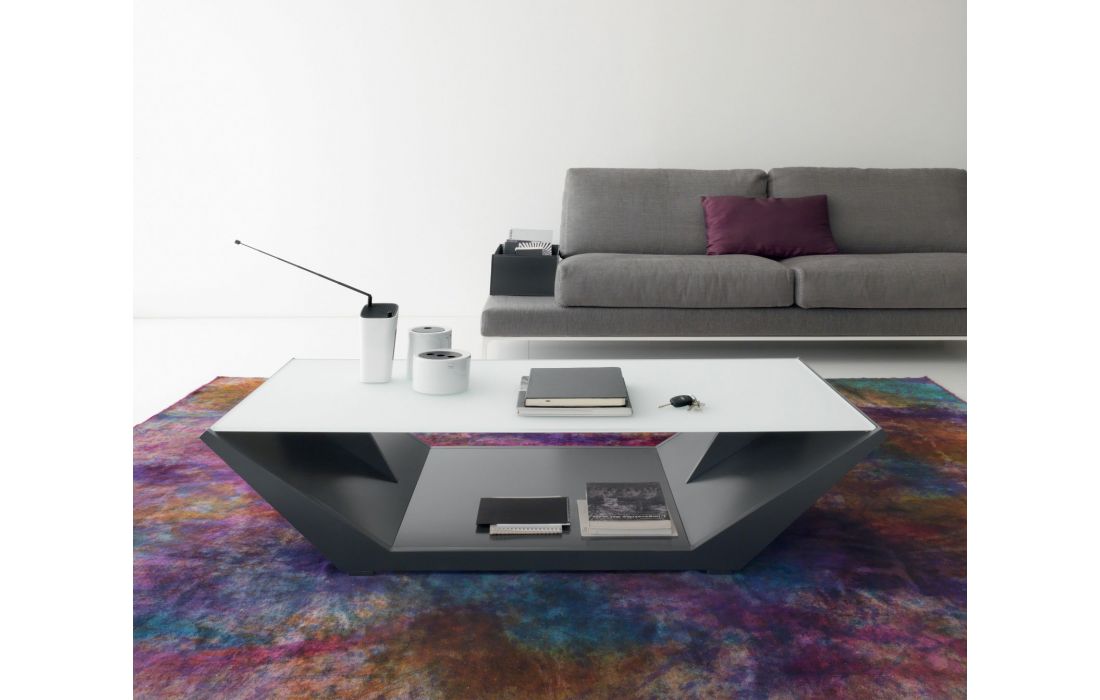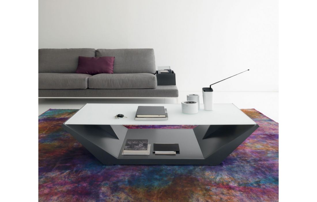 Mesa de centro com base em lacado cinza com tampo de vidro branco ou cinza extra claro