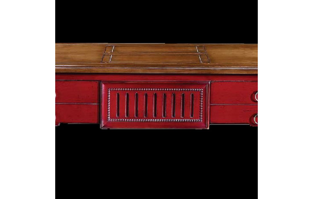 Mesa de centro retangular com 2 gavetas, abertura superior com pormenores de mármore, design provençal com possibilidade de vários acabamentos.
