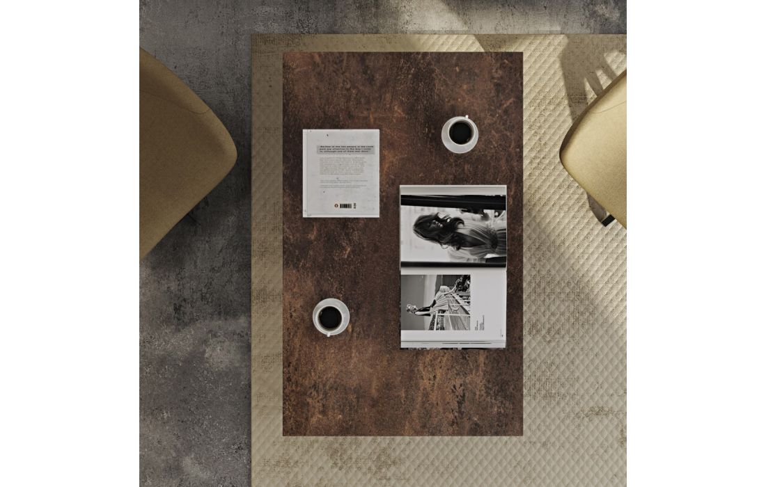 Mesa de centro modular com diversas opções de tampo em conjugação com a opção de pés metálicos em cromado ou preto.
