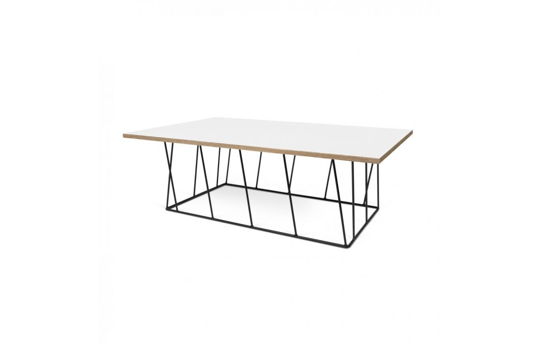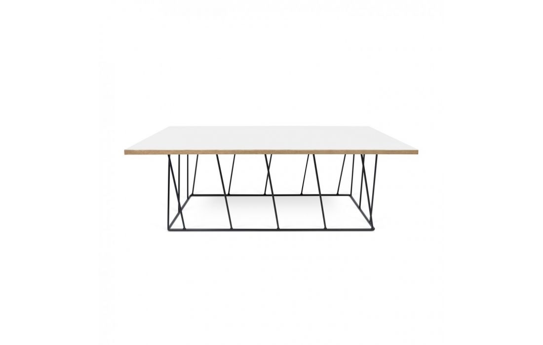 Mesa de centro modular com diversas opções de tampo em conjugação com originais pés metálicos em verde água ou preto.