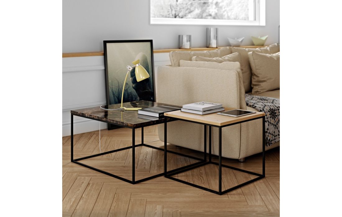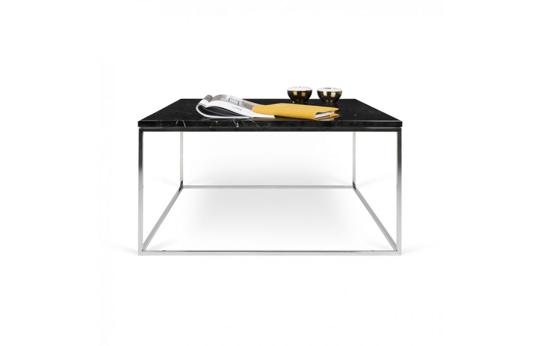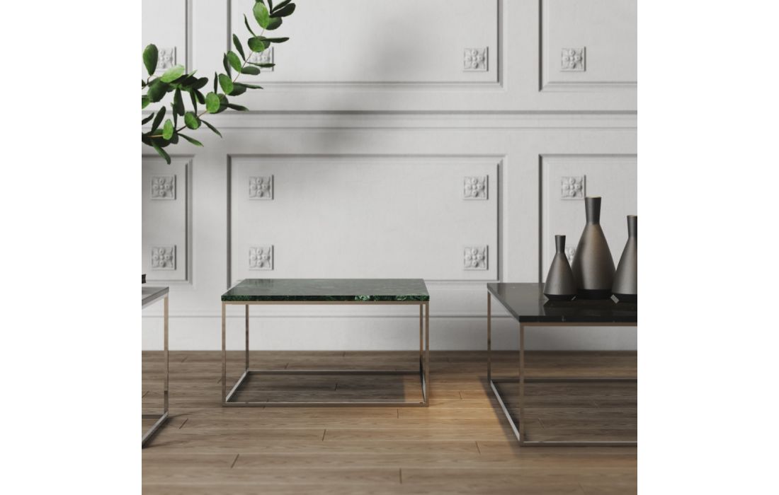 Mesa de centro modular com diversas opções de tampo em conjugação com a opção de pés metálicos em cromado ou preto.