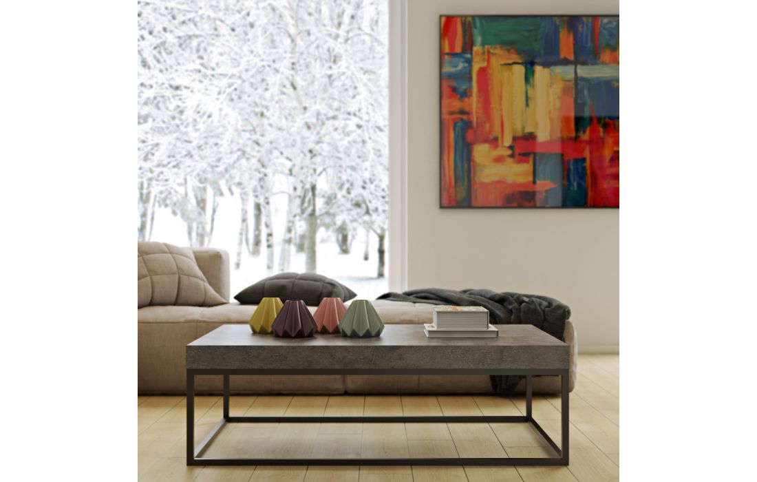 Mesa de centro com acabamento de cimento, enquadra facilmente em qualquer ambiente e combina com as mais diversas decorações.