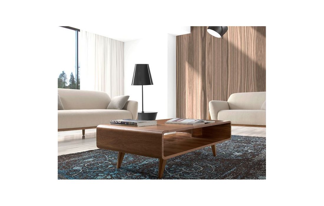 Mesa de centro com design moderno em MDF de nogueira tanto a sua estrutura como as suas pernas e proporciona um toque moderno e vanguardistaDestinatário :