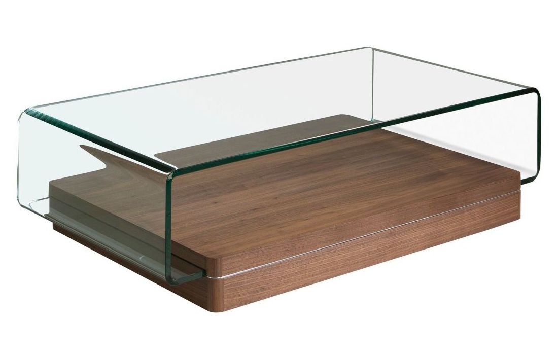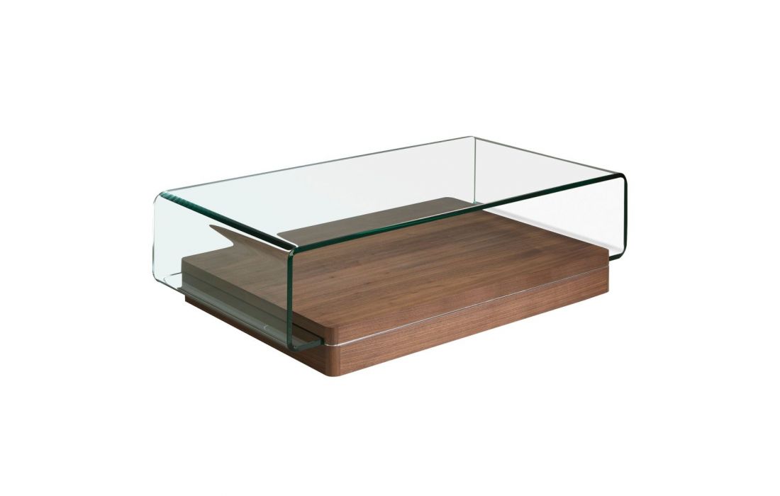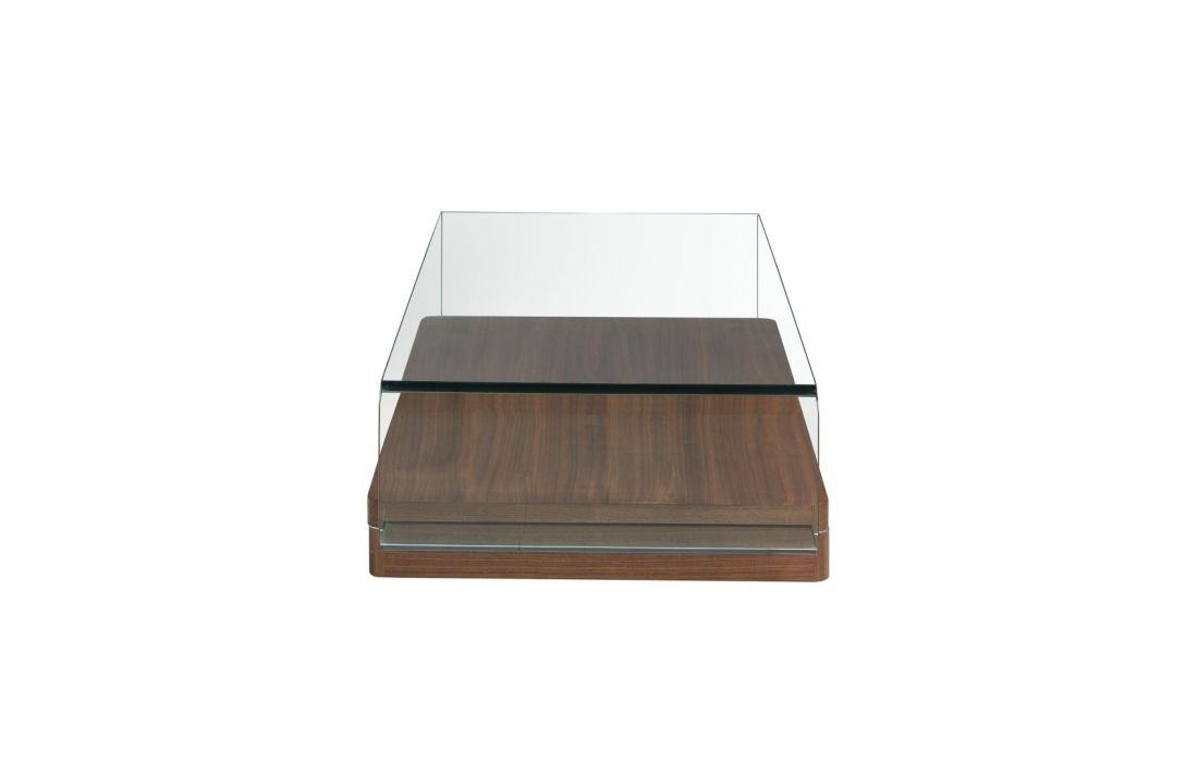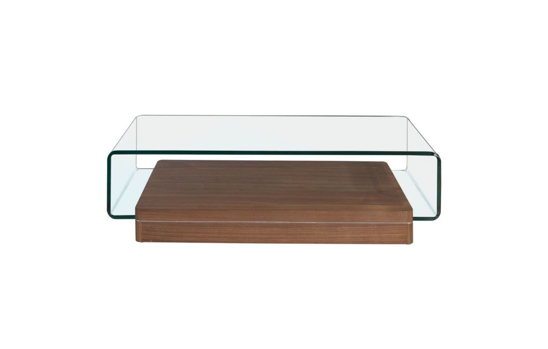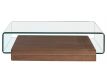 Mesa de centro retangular moderna com tampo em vidro temperado e pernas em MDF de nogueira naturalDestinatário :
