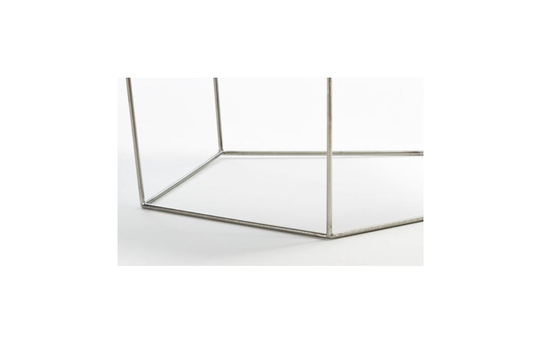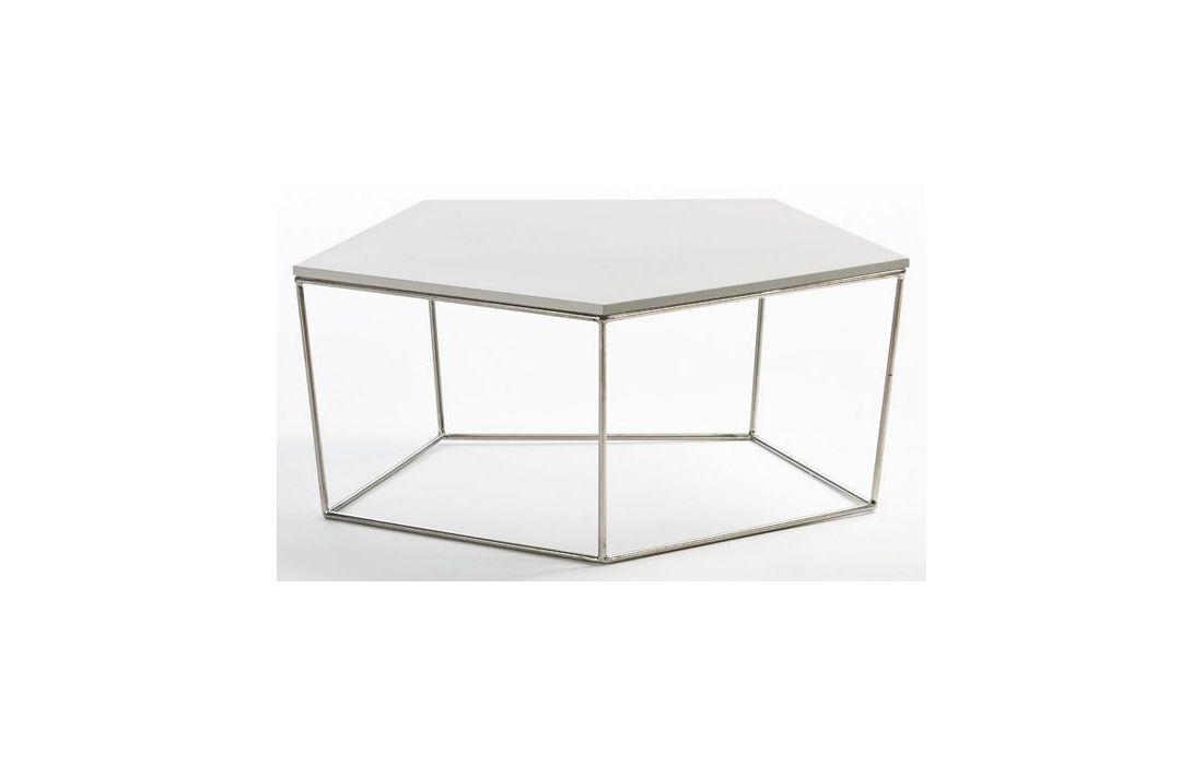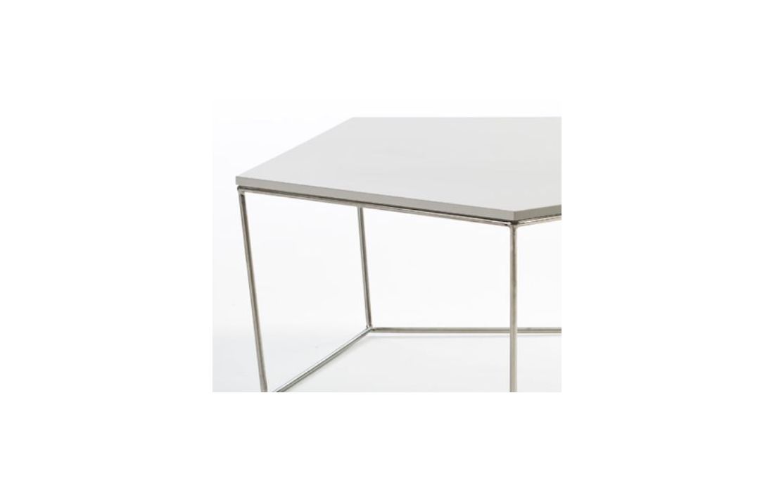 Mesa de centro com estrutura em aço e tampo em mdf lacado branco.