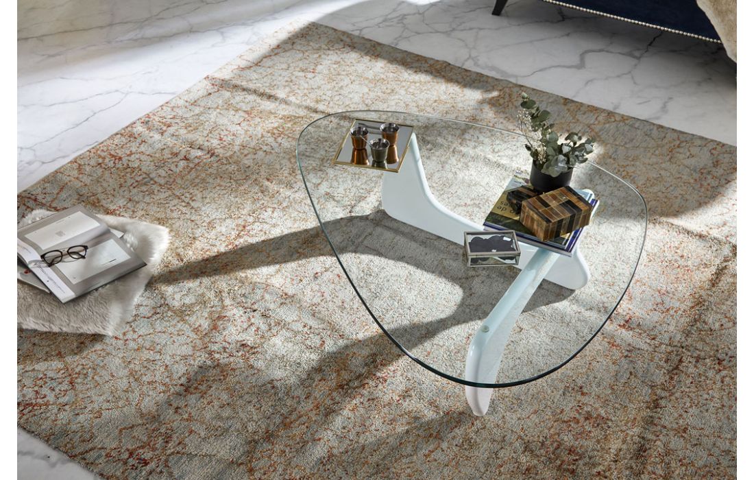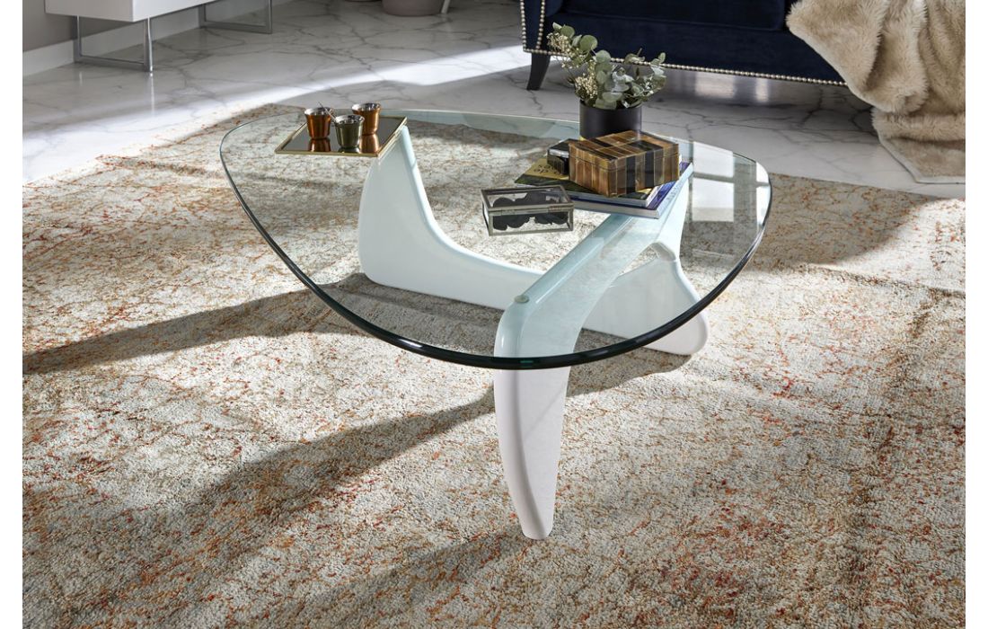 Mesa de centro com tampo em vidro temprado com pé lacado branco brilho.Destinatário :