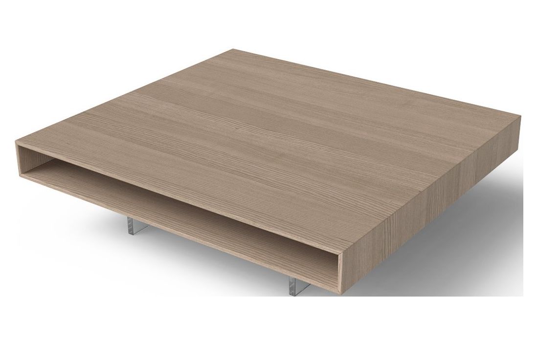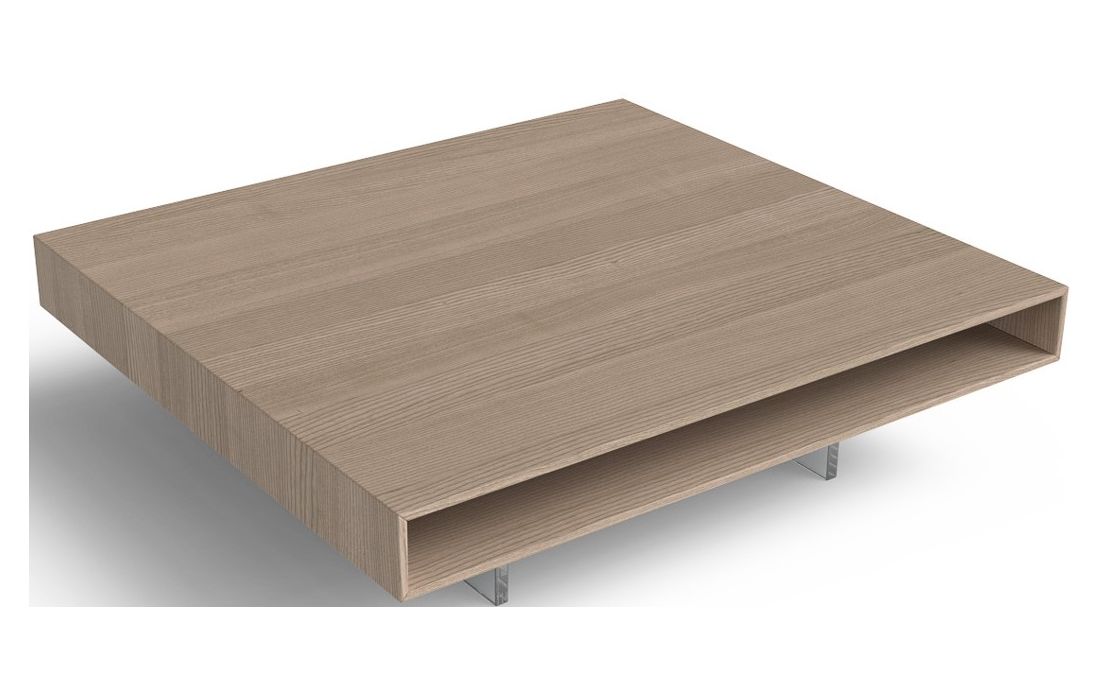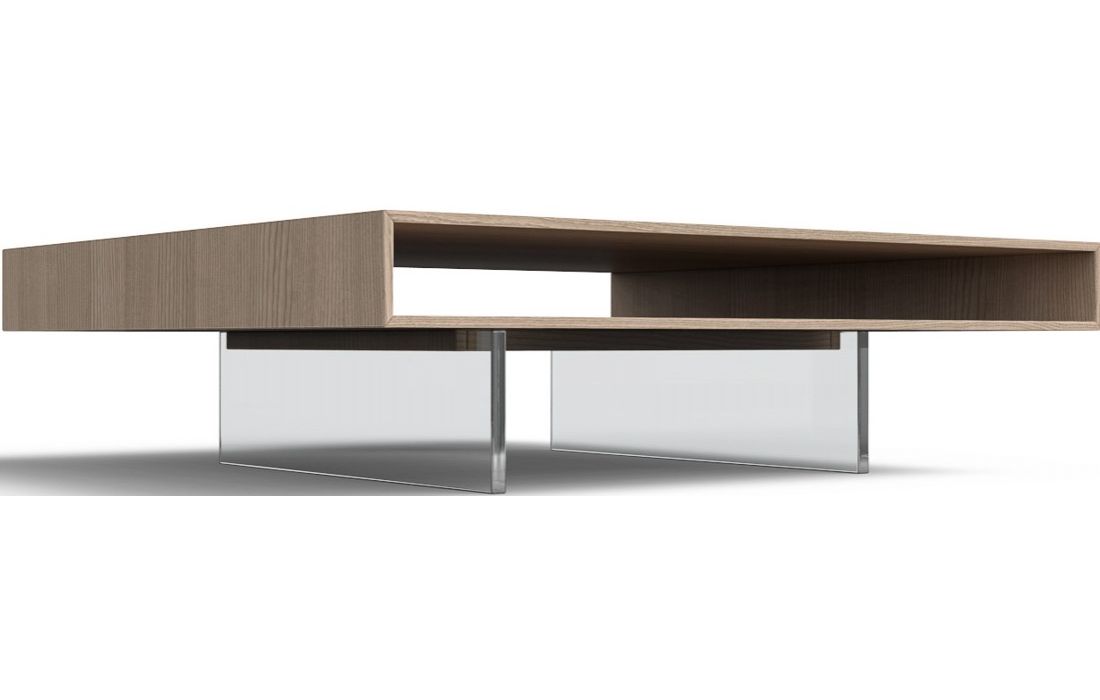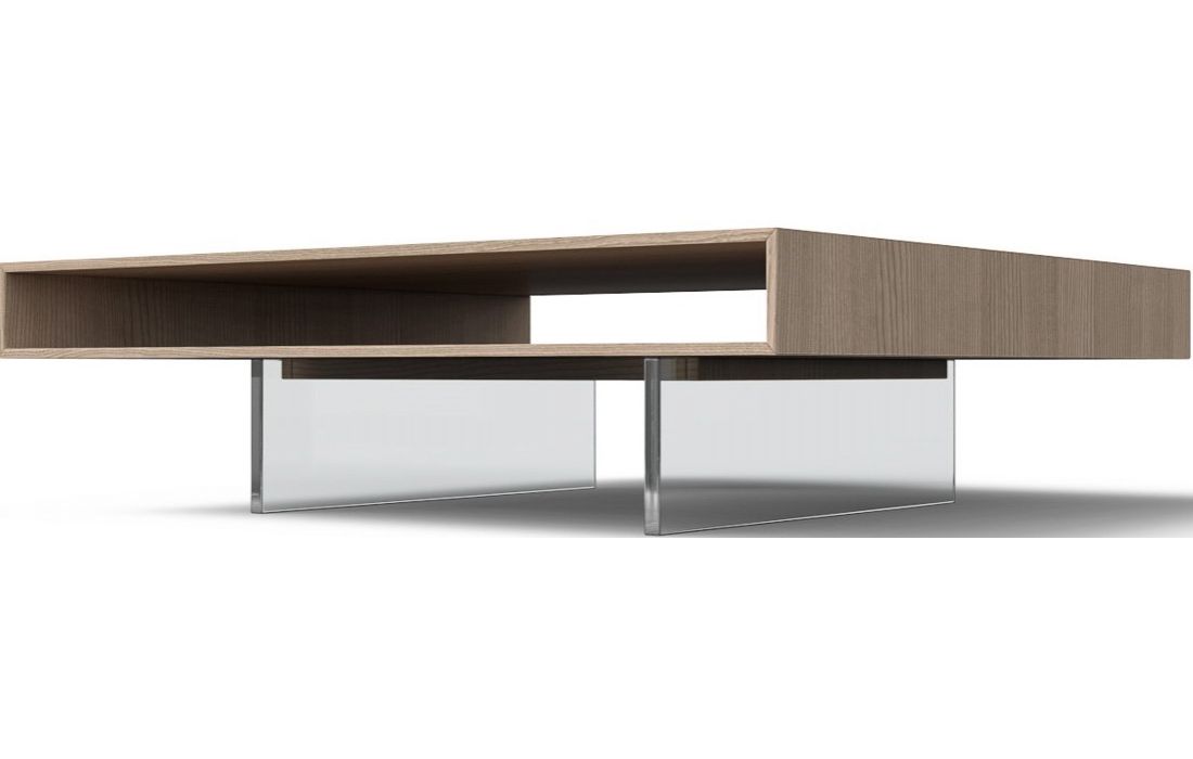 Mesa de centro com estrutura em madeira e pés em vidroDestinatário :