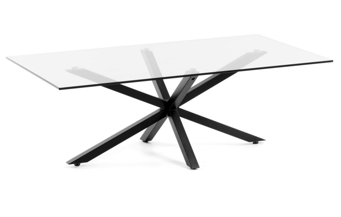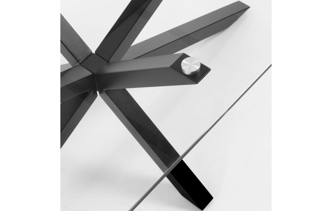 Mesa de centro, com tampo de vidro e pernas de aço com acabamento em preto fosco.Destinatário :