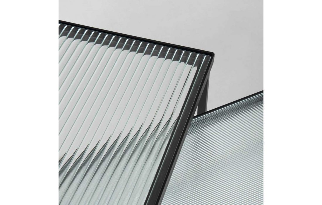 Comjunto de 2 mesas de centro feitas em metal e tampo em vidro.