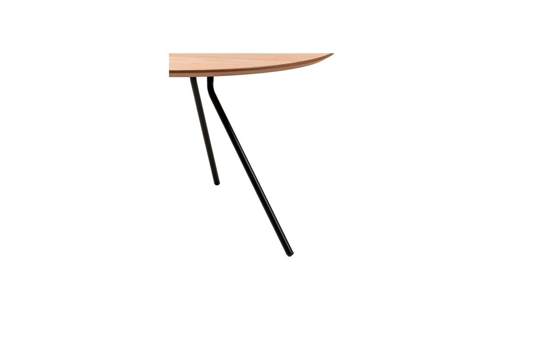 Mesa de centro com estrutura em metal preto e tampo em carvalho à cor natural