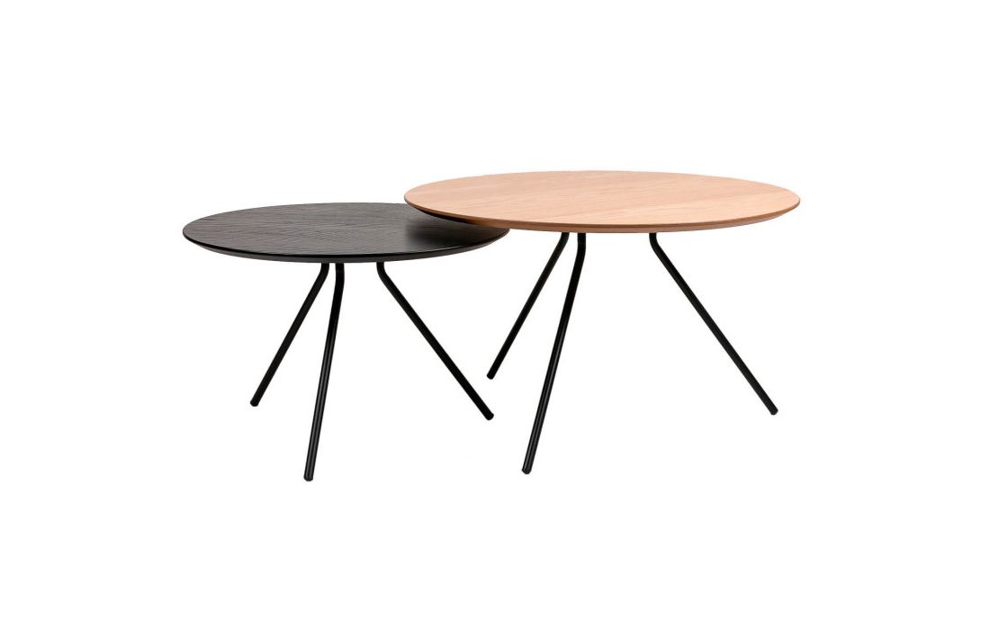 Mesa de centro com estrutura em metal preto e tampo em carvalho à cor preto