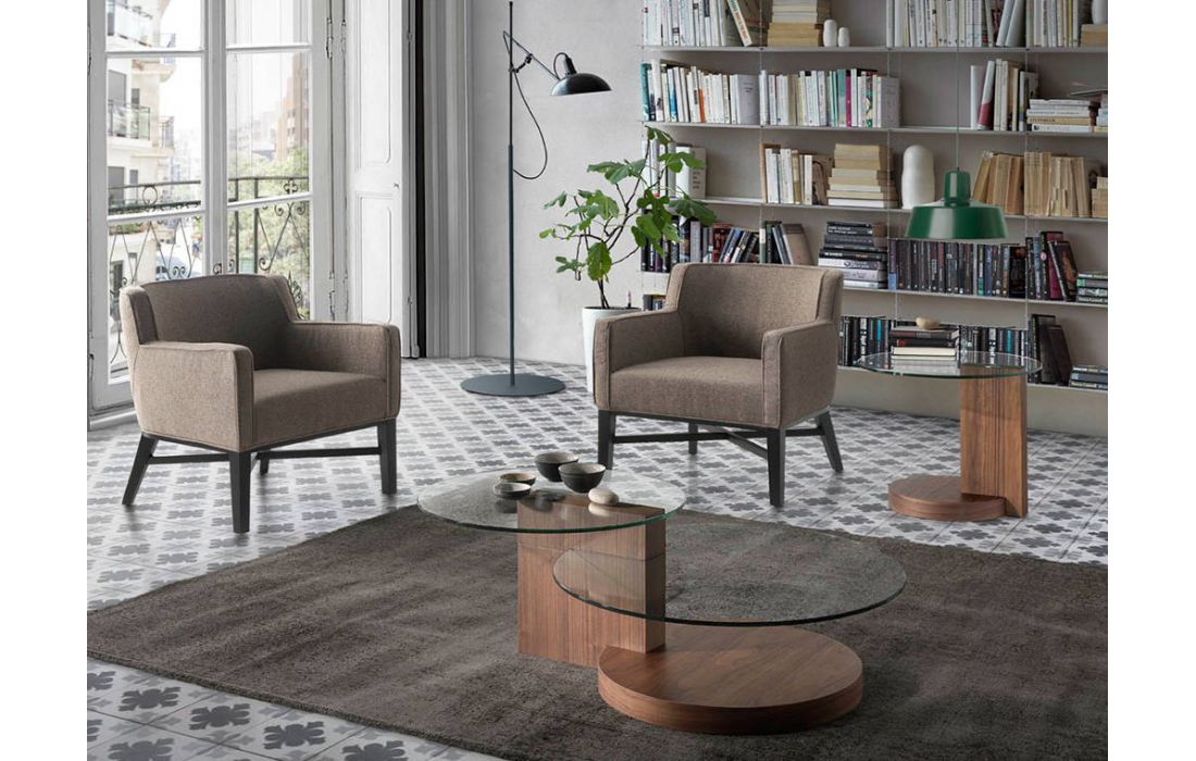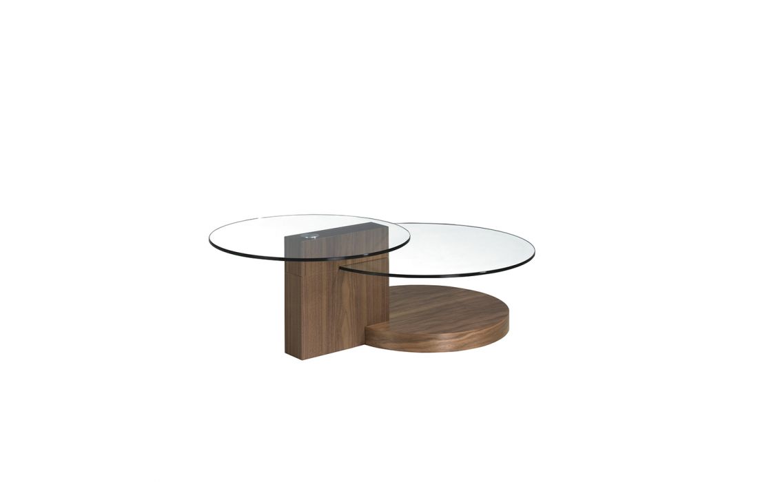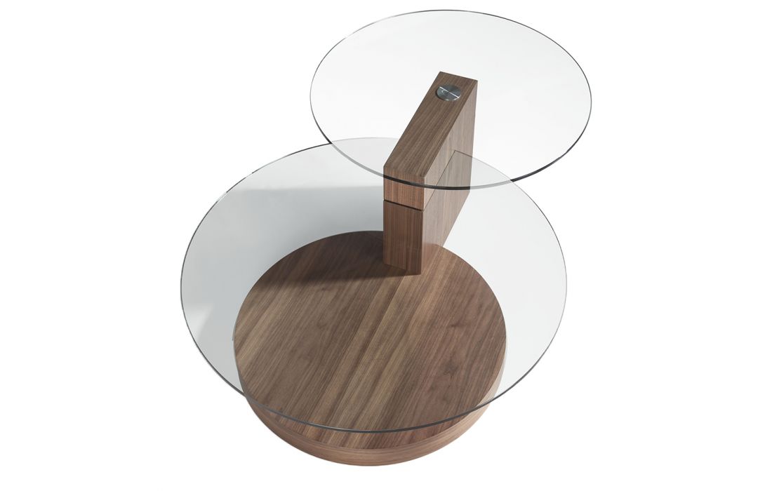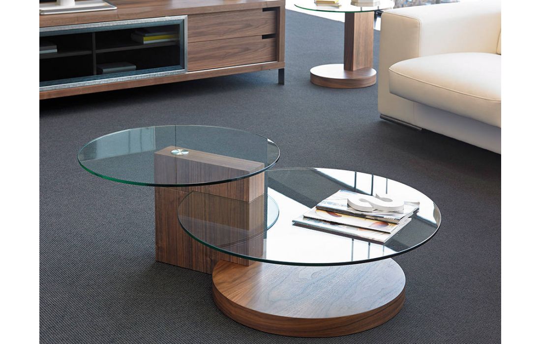 Mesa de centro moderna com tampo em vidro e pernas em MDF de nogueiraDestinatário :
