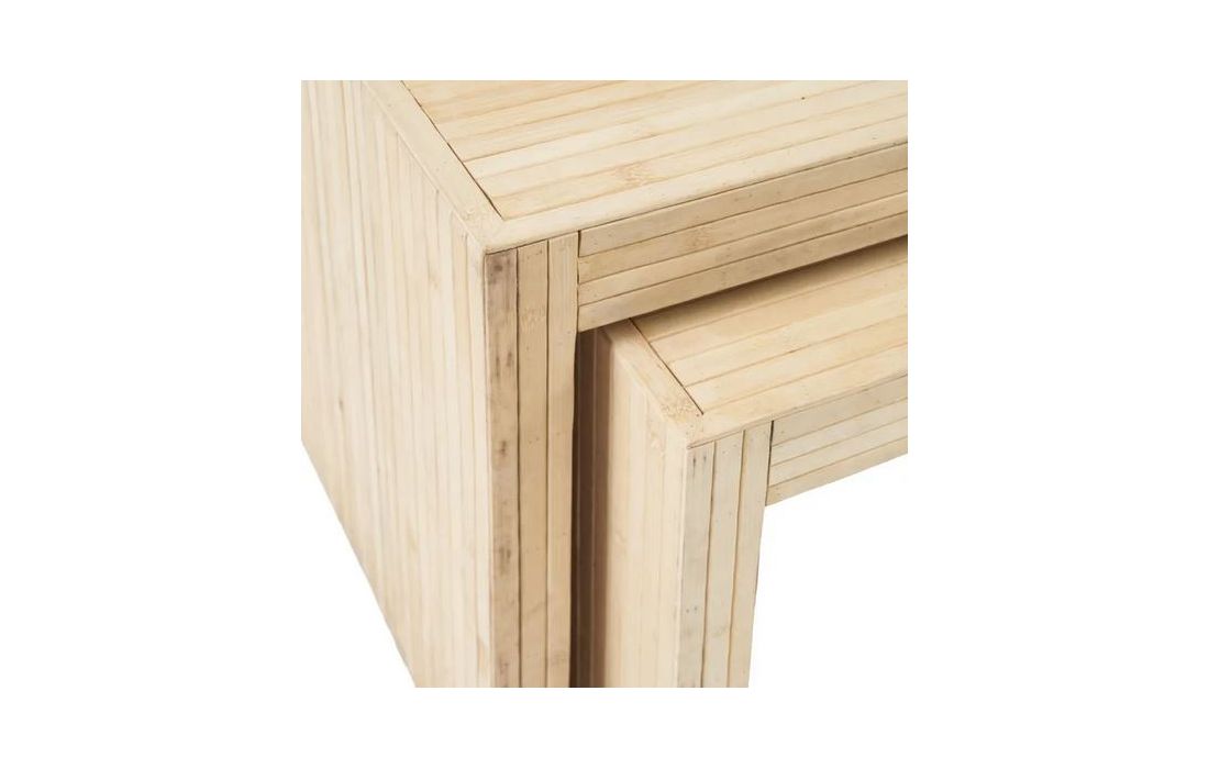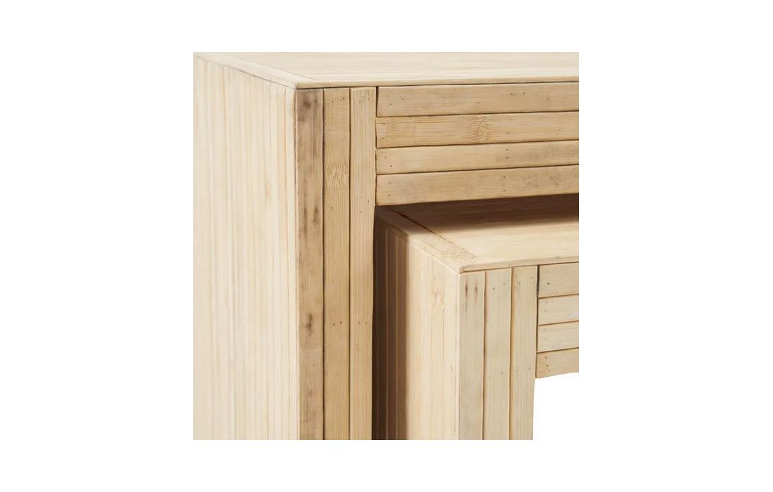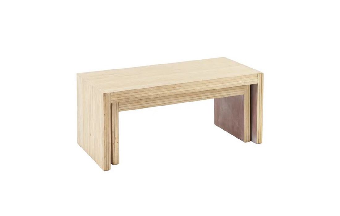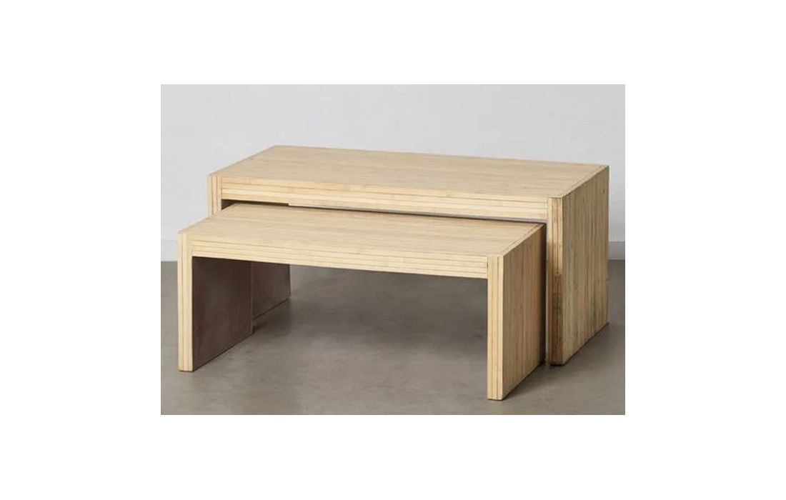 Conjunto de 2 mesas de centro em madeira de abeto cor natural Dimensões em cm L 110 P 55 A 50(grande) L 96 P 45 A 41,50(pequena) Prazo de Entrega 10 a 20 dias