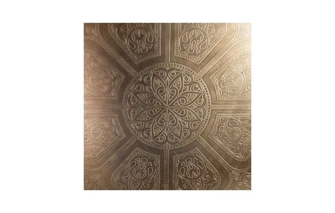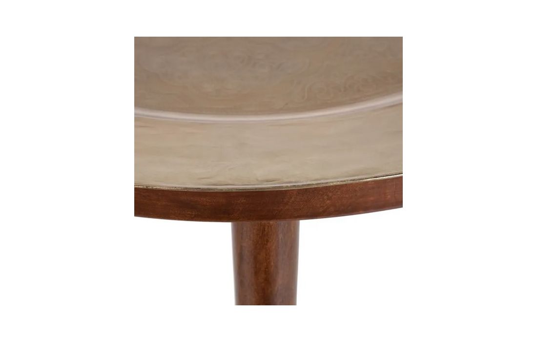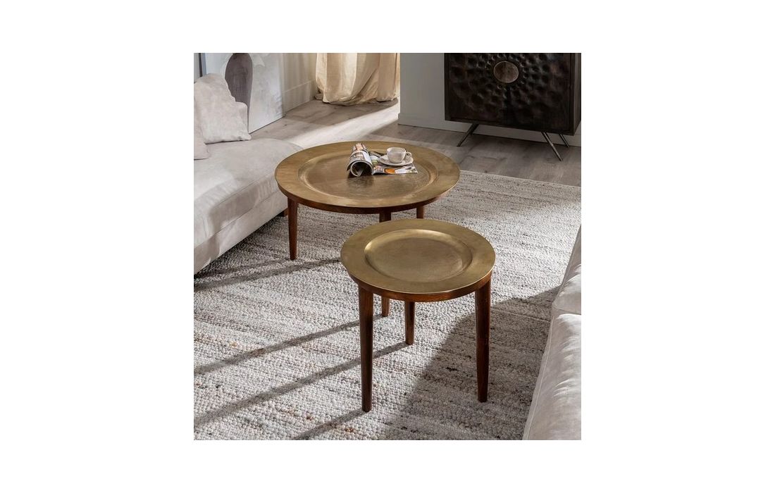 Mesa de centro redonda em ferro dourado e madeira natural.Destinatário :
