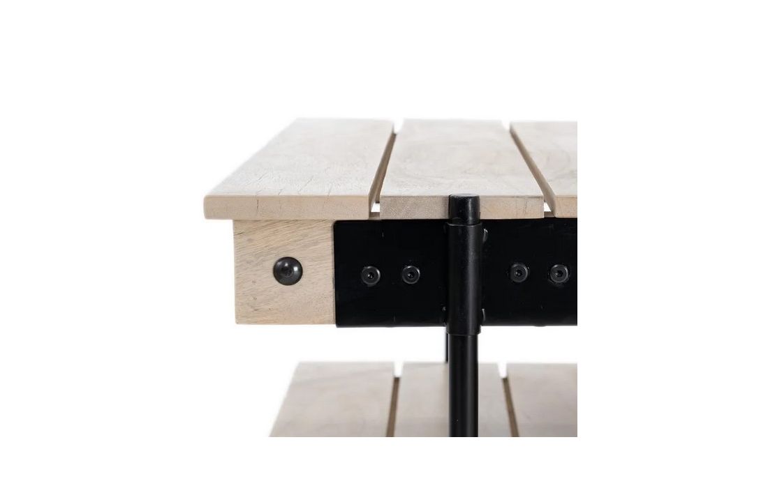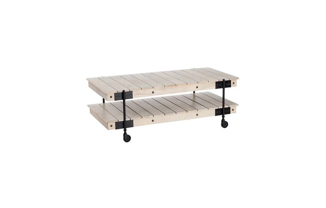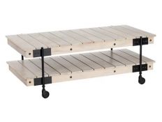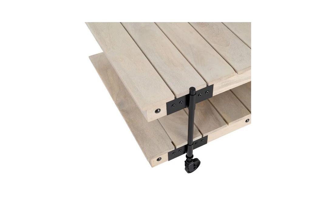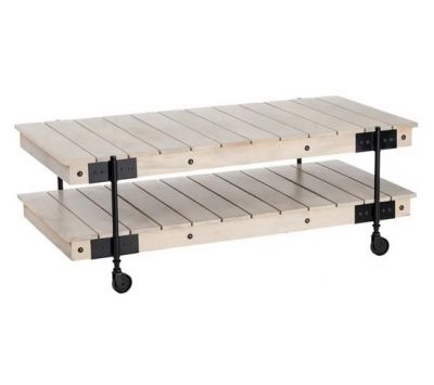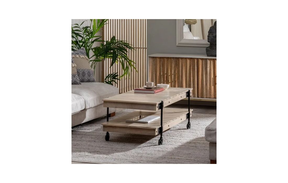 Mesa de centro com rodas em madeira natural e ferro.Destinatário :