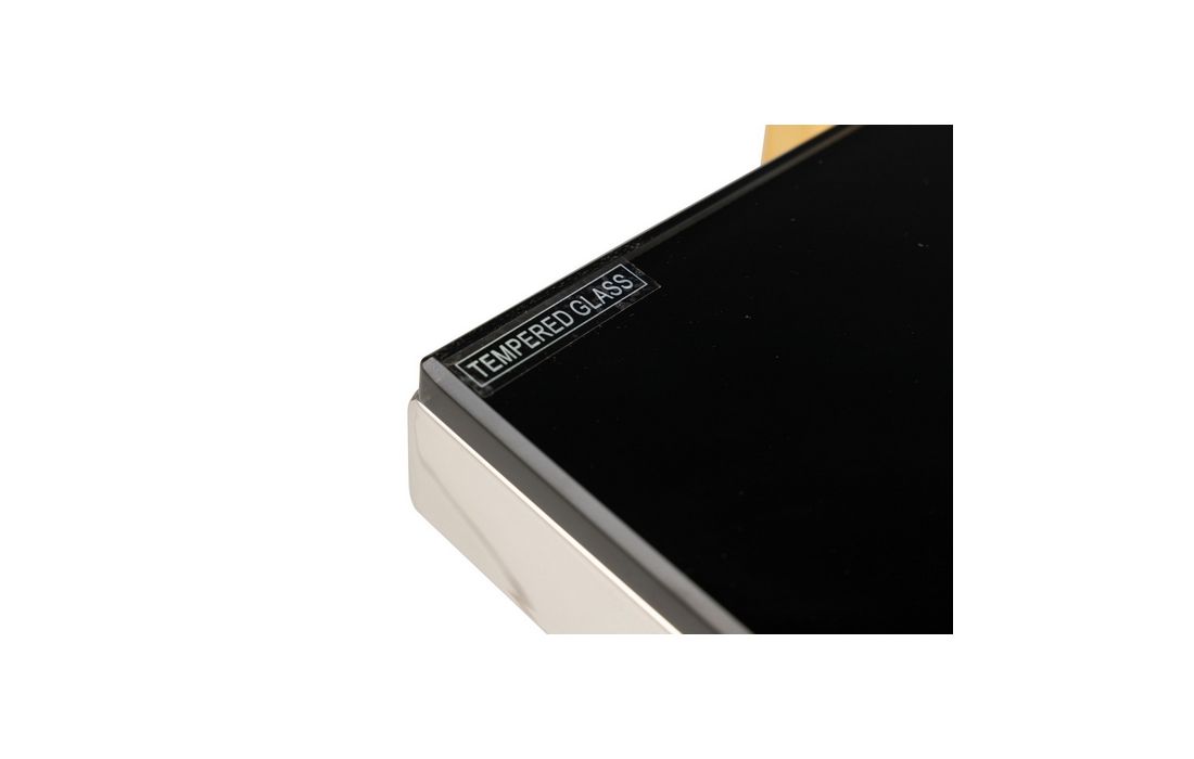 Mesa de centro em inox dourado e tampo em vidro temperado pretoDestinatário :