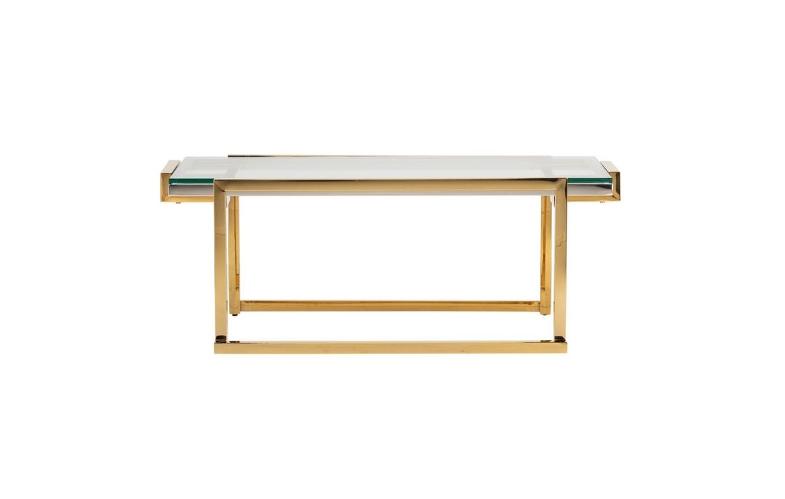 Mesa de centro em inox dourado e tampo em vidro temperado.Destinatário :