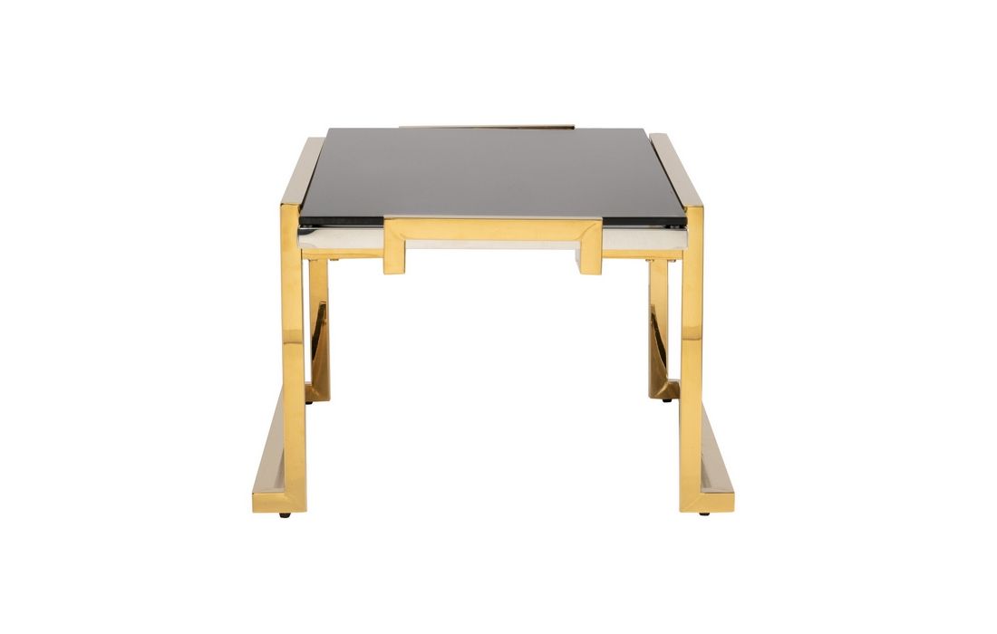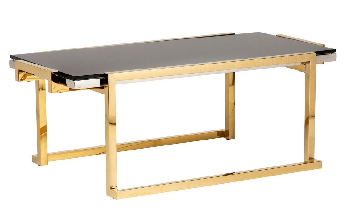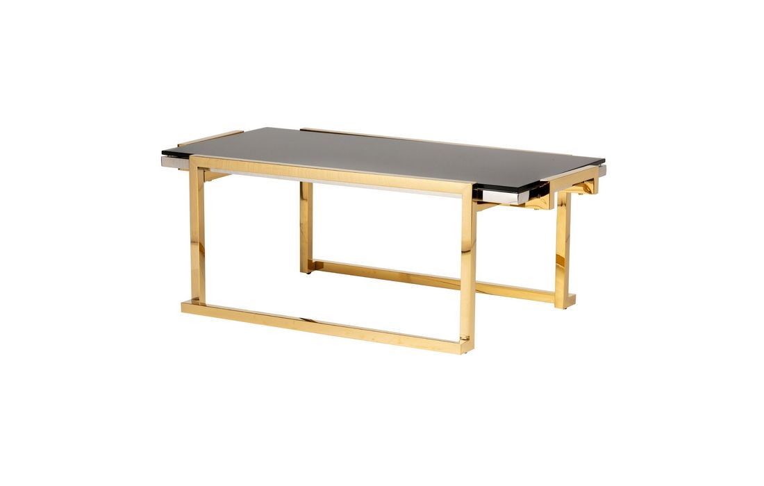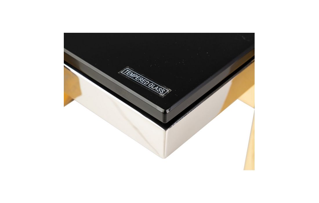 Mesa de centro em inox dourado e tampo em vidro temperado preto.Destinatário :