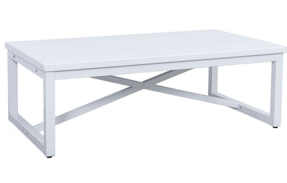 Mesa de centro em madeira de olmo reciclada com pés em metal brancoDestinatário :