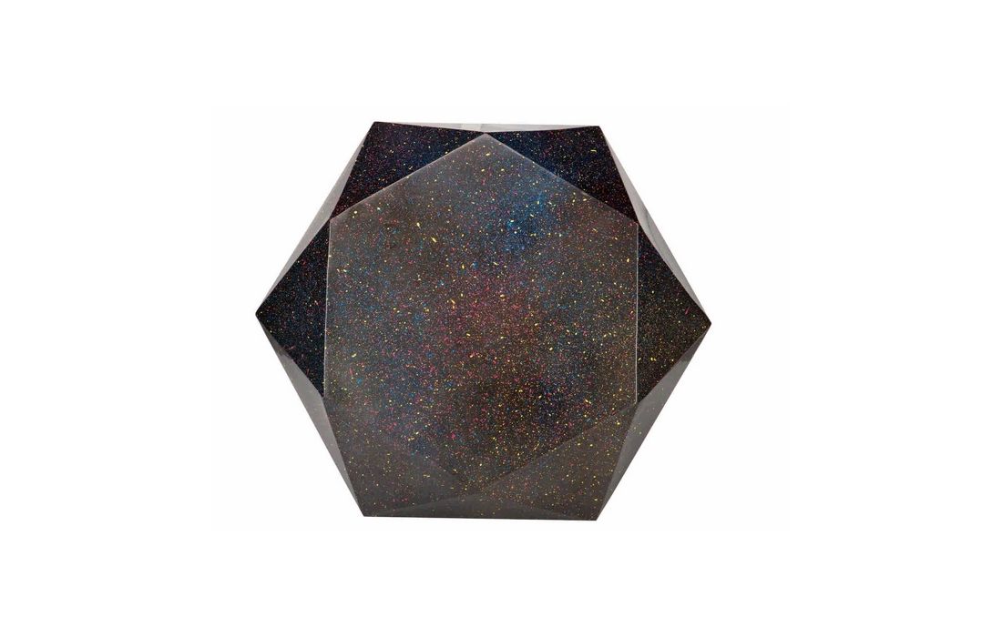 Mesa de centro em latão preto com apontamentos multicolores , pés em ferro douradoDestinatário :
