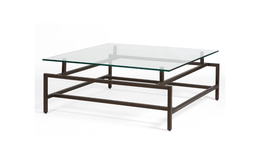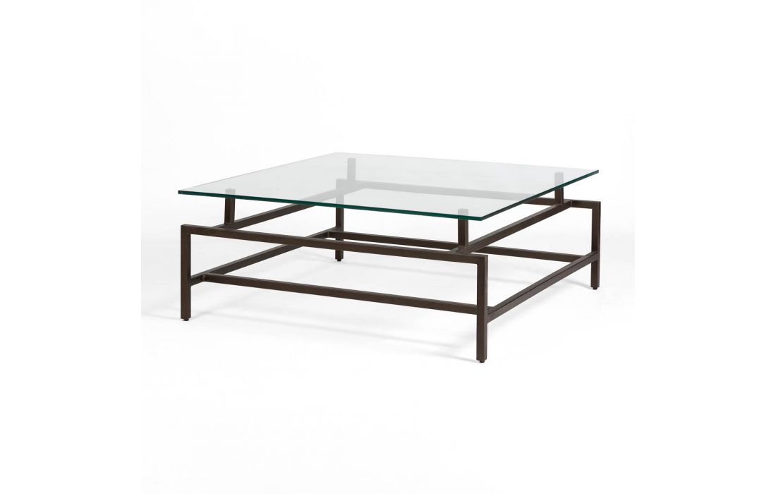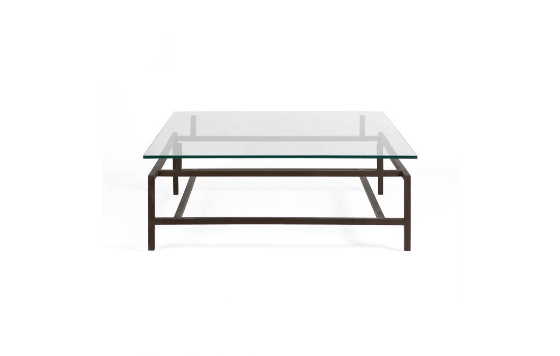 Mesa de centro com a estrutura em metal e tampo em vidro.Destinatário :