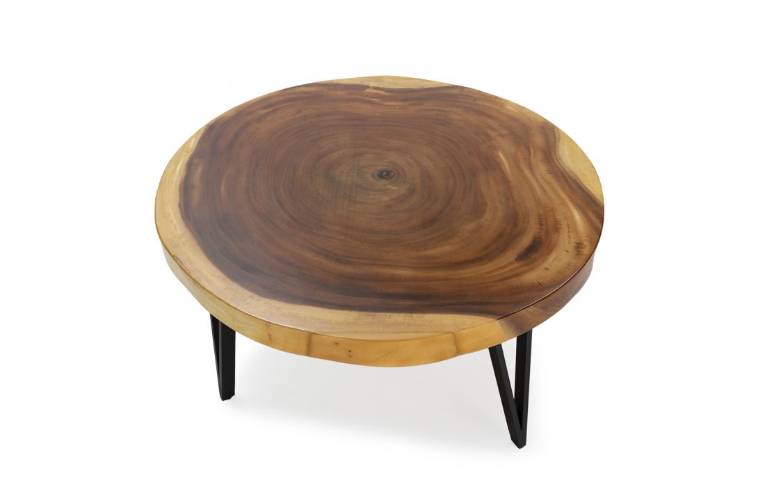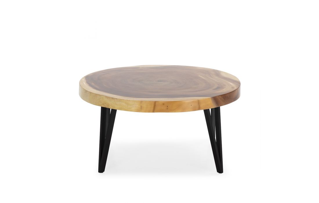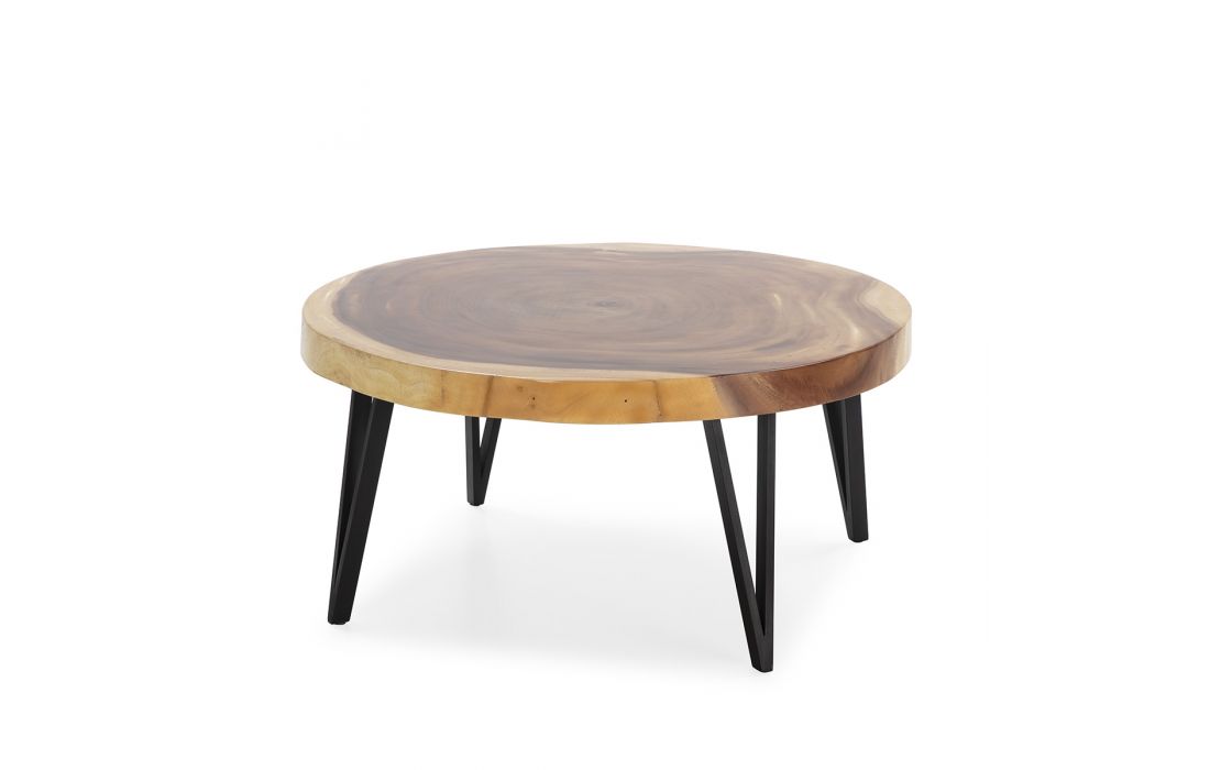 Mesa de centro com estrutura em metal preto e tampo em madeira cor natural.Destinatário :