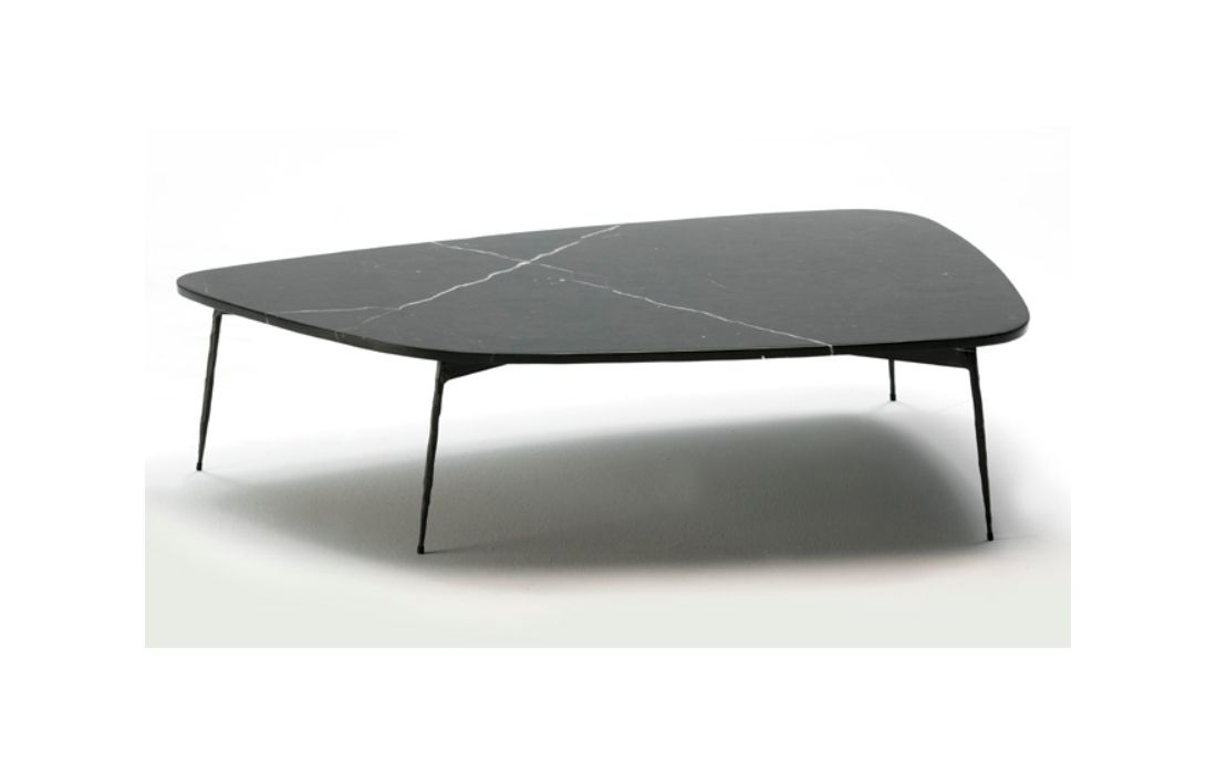 Mesa de centro com estrutura em metal e tampo em mármore.Destinatário :