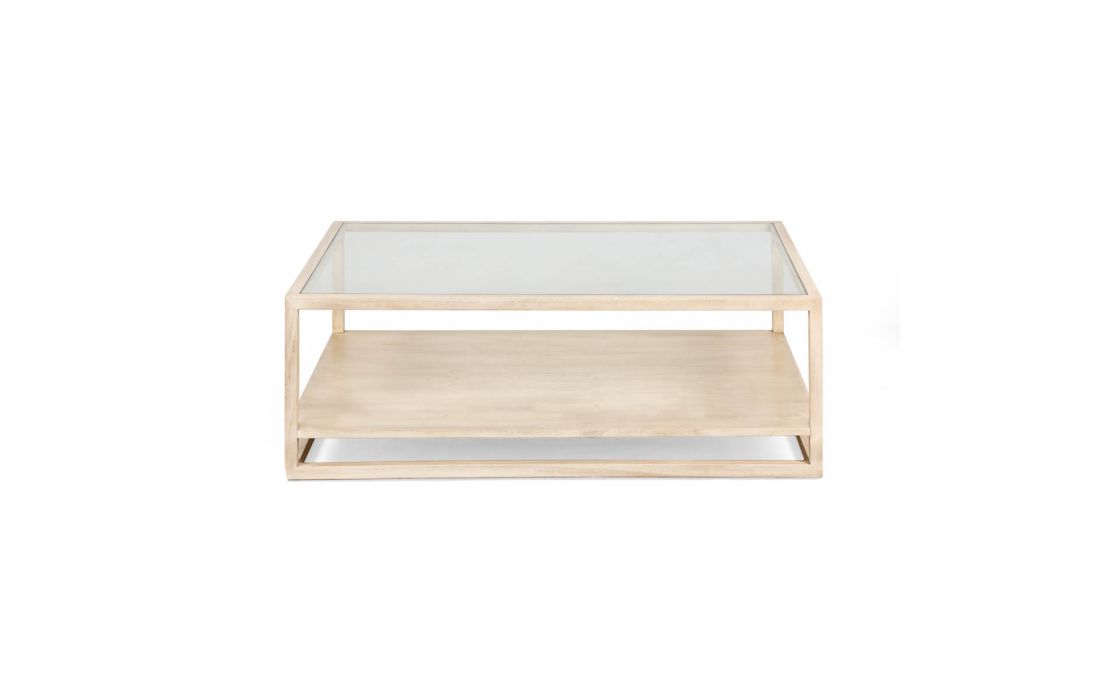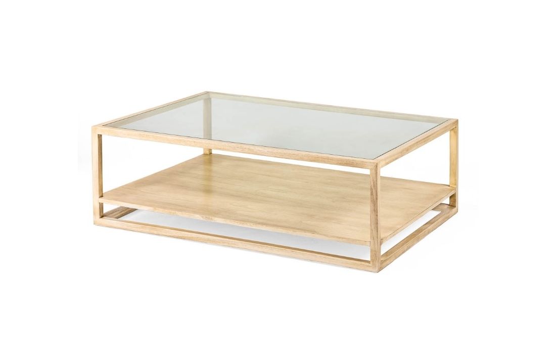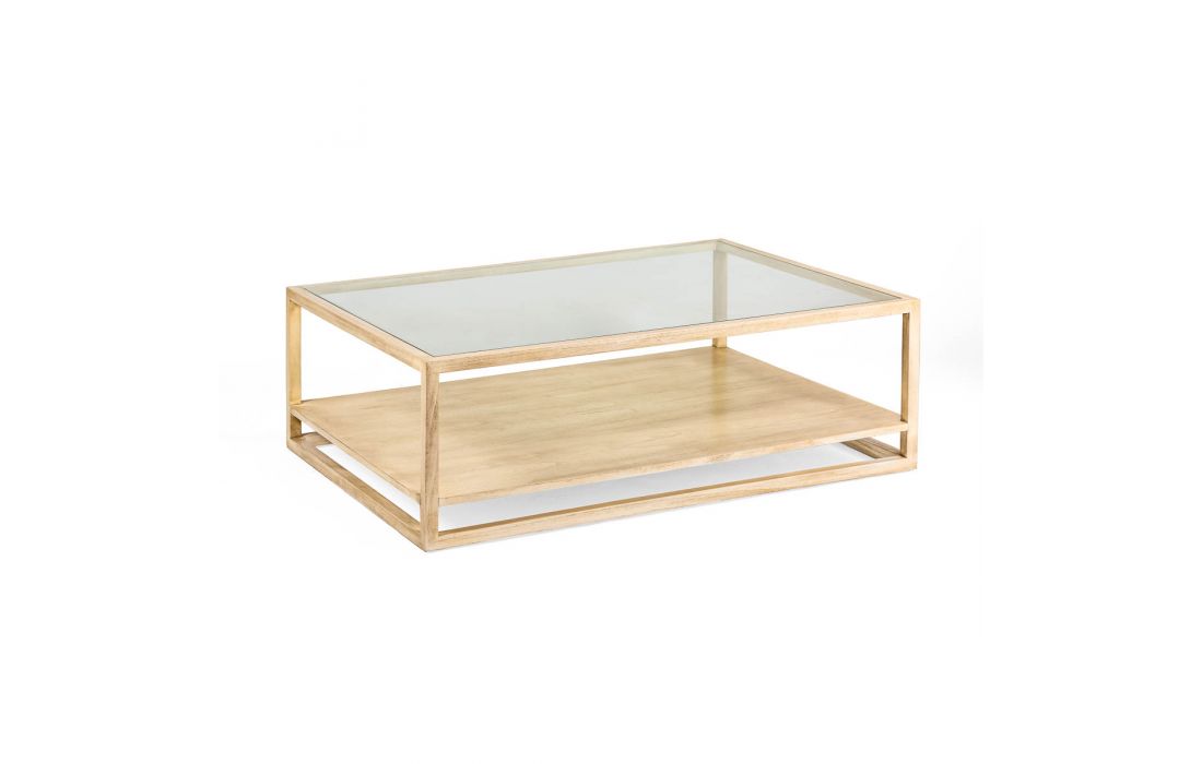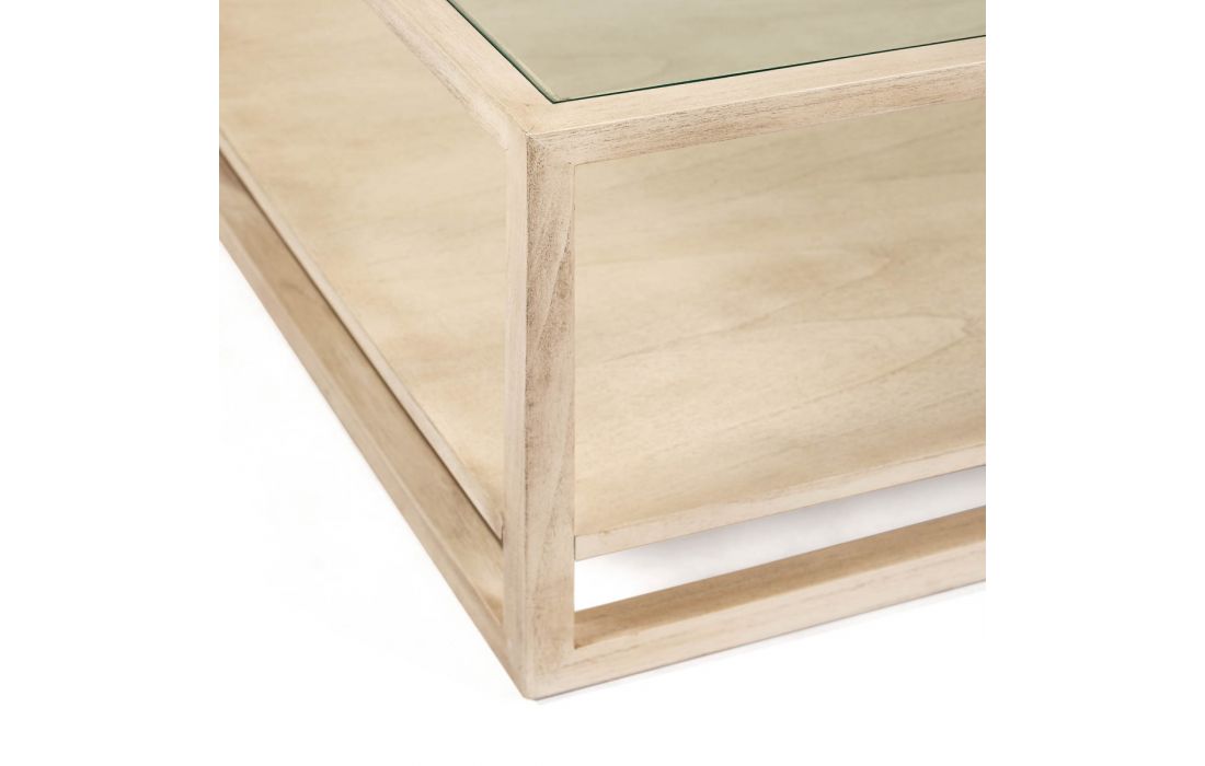 Mesa de centro retangular em madeira de cedro com tampo em vidro.Destinatário :