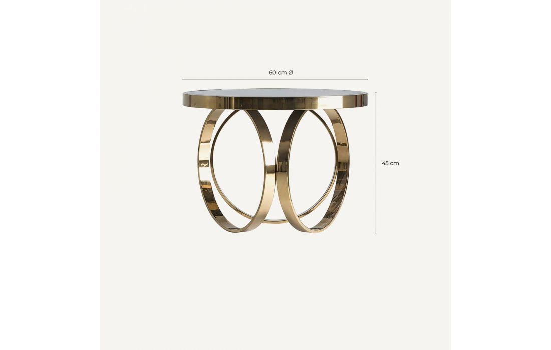 Mesa de centro com estrutura em aço dourado e tampo em espelho e vidro na cor preta.Destinatário :