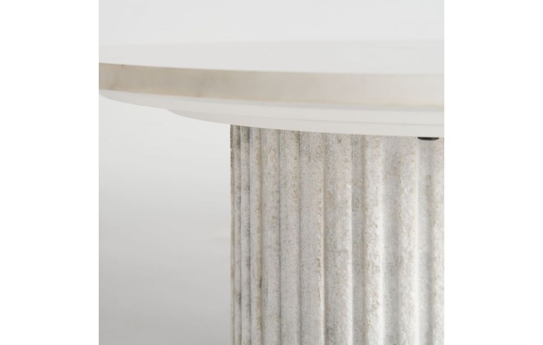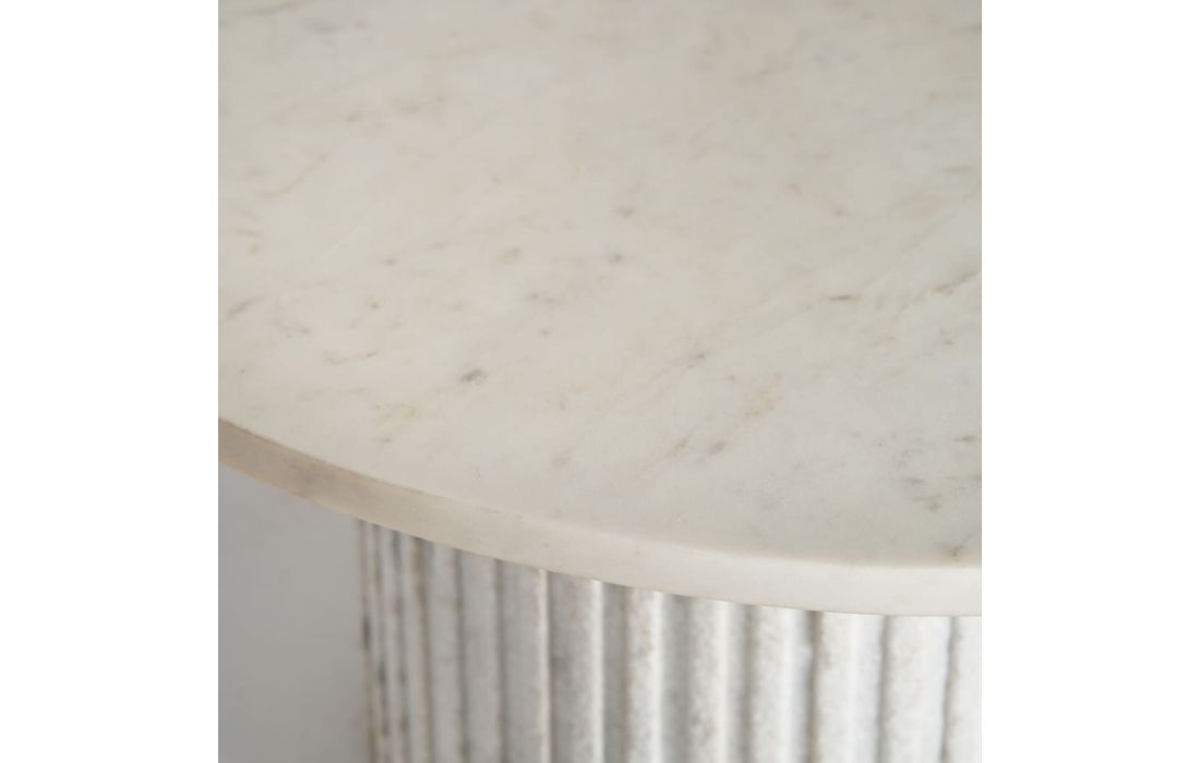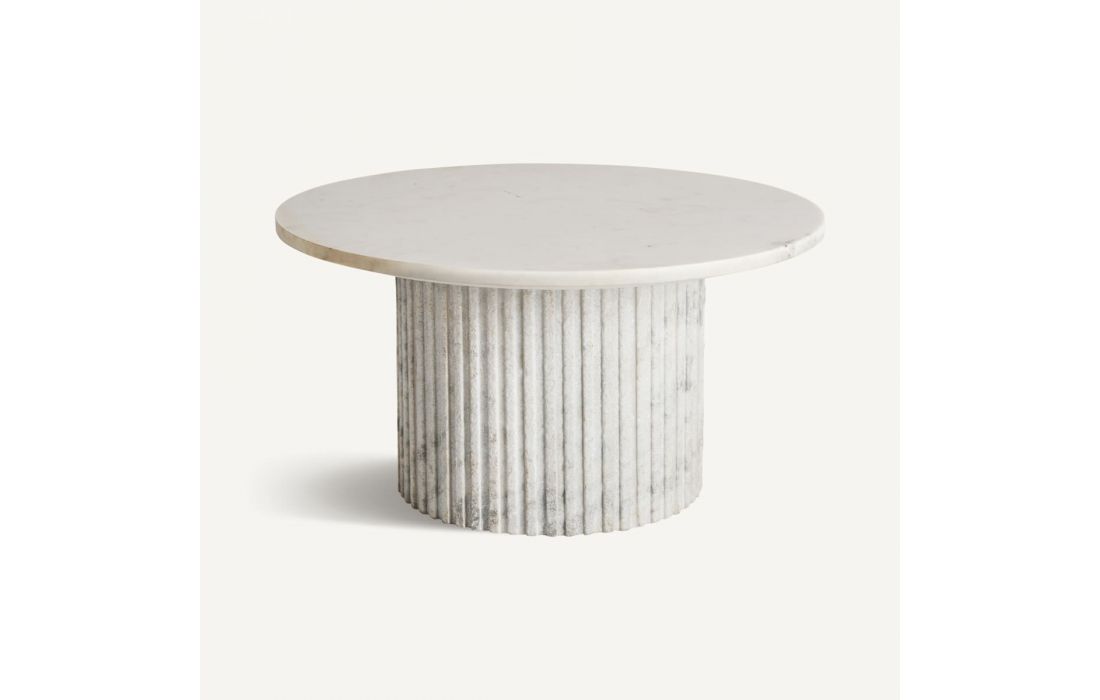 Mesa de centro com estrutura em madeira e tampo em mármore branco.Destinatário :